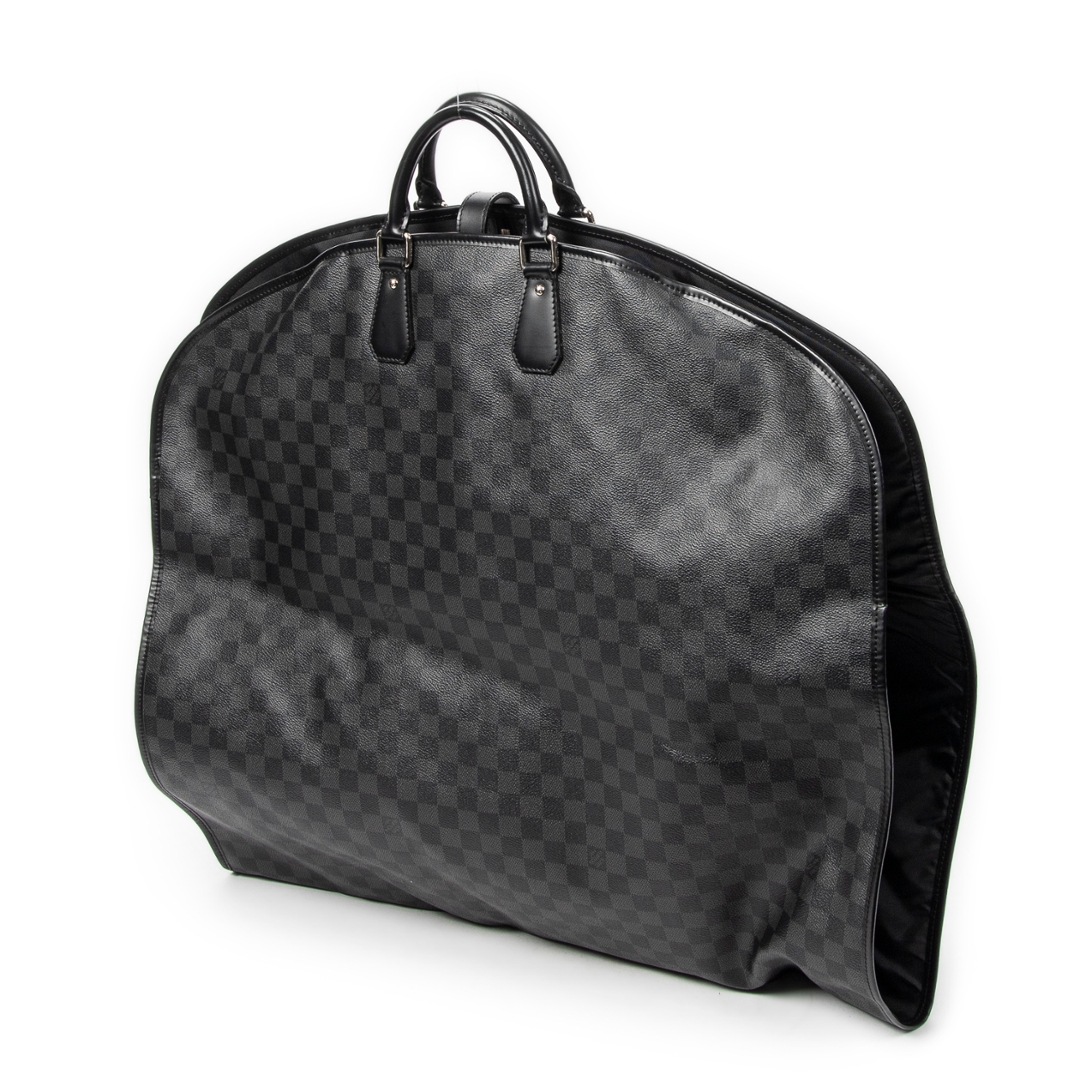 A vintage Louis Vuitton garment bag crafted in the house’s signature grey and black Damier Graphite coated canvas, offering a refined and instantly recognisable travel companion. The sleek, structured silhouette is complemented by smooth leather top handles and subtle hardware detailing, delivering a sophisticated balance of practicality and understated luxury synonymous with the brand.
