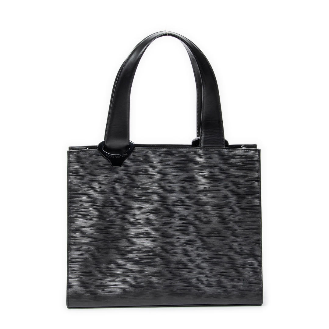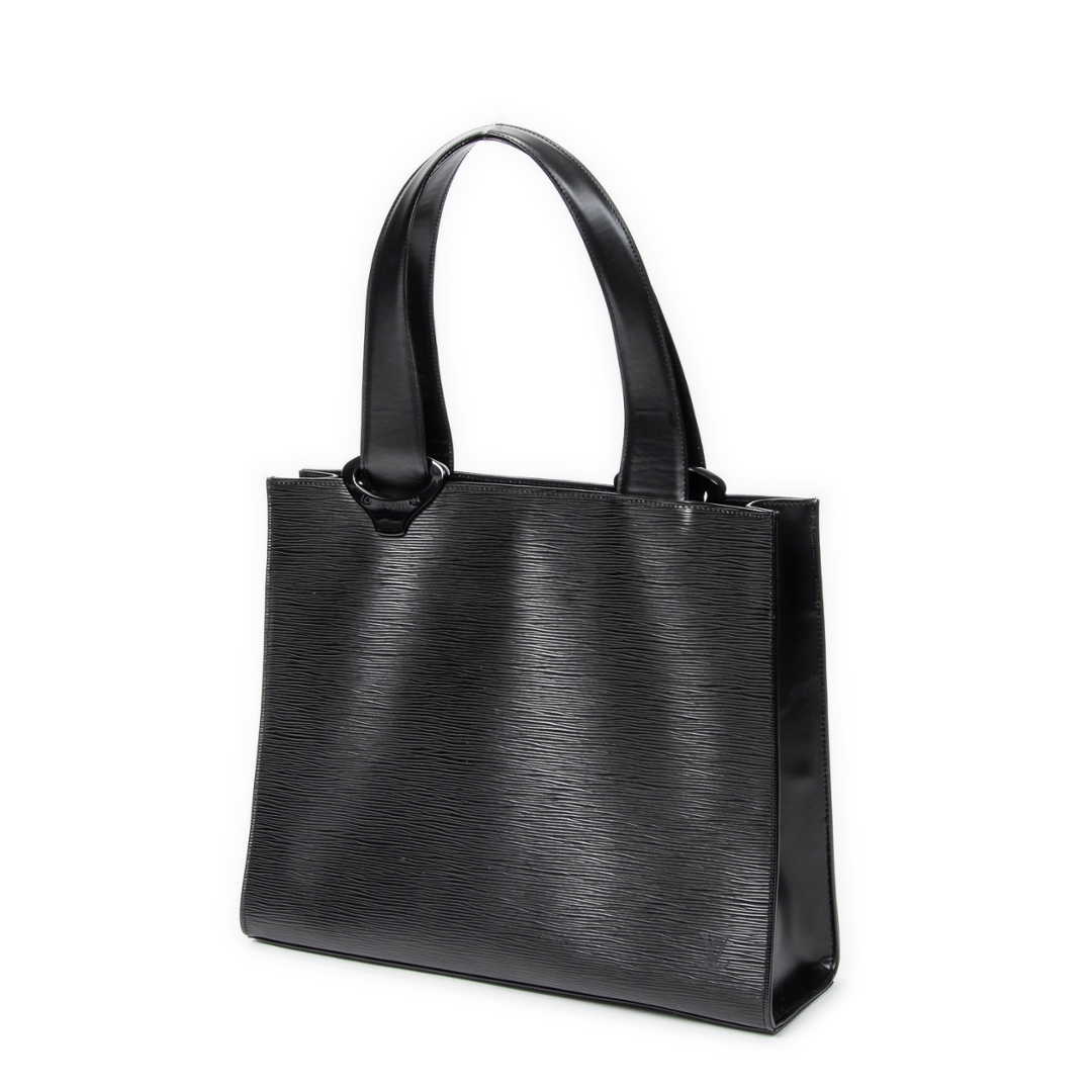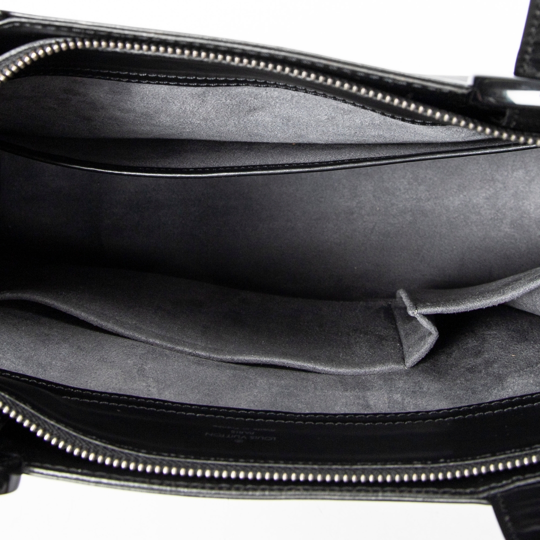 A vintage Louis Vuitton black calf leather Gemeaux bag with a certificate of authenticity. Approximately 30cm height, 38cm width.
