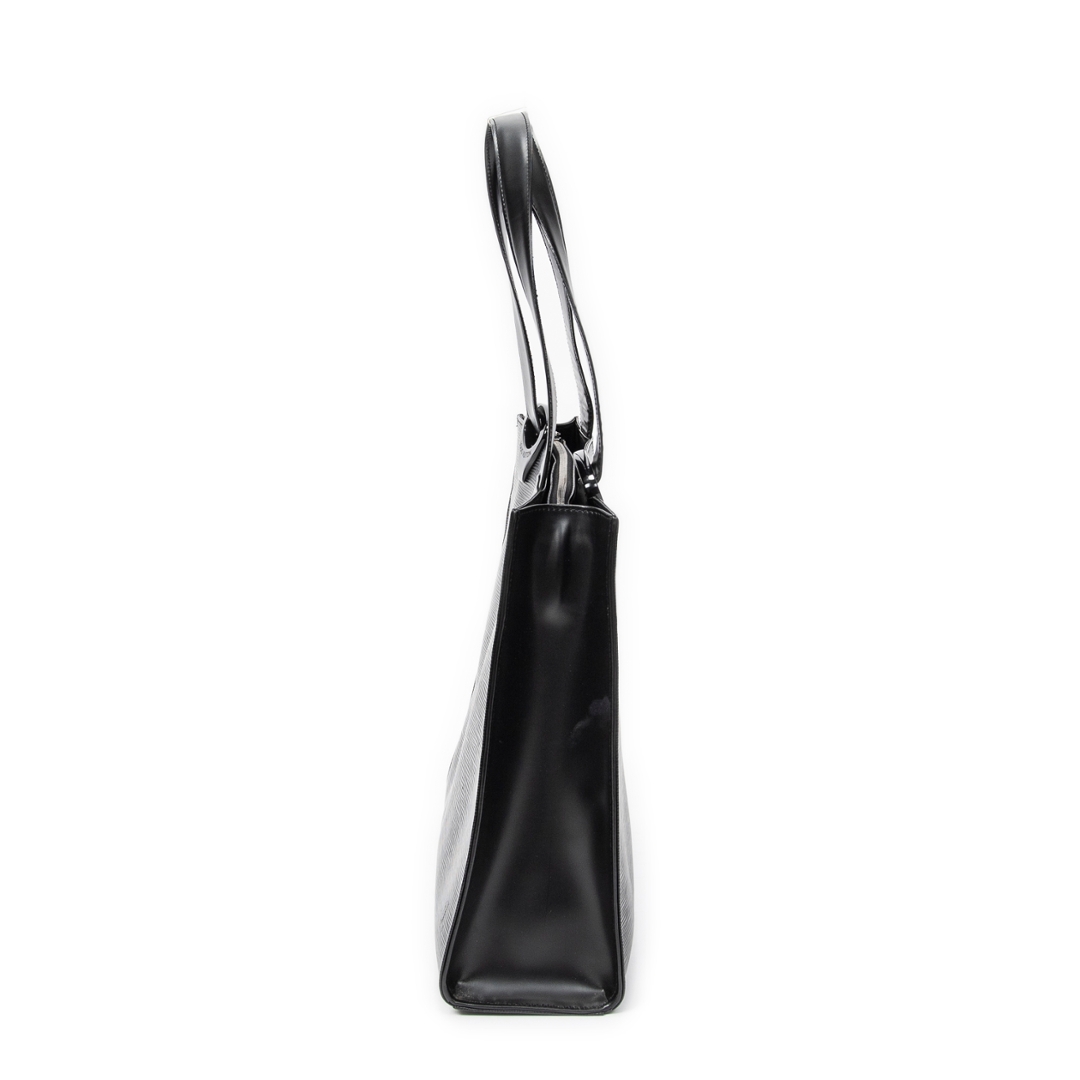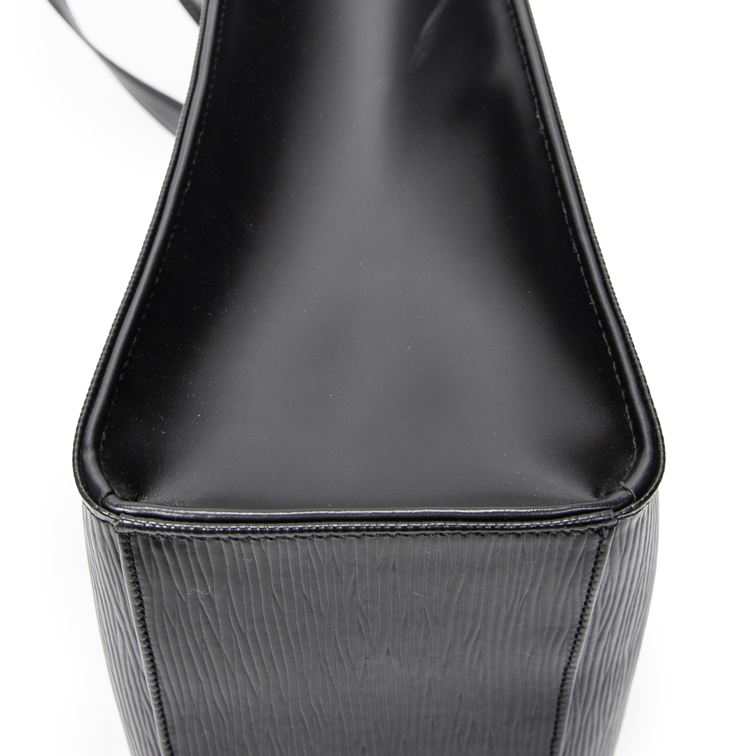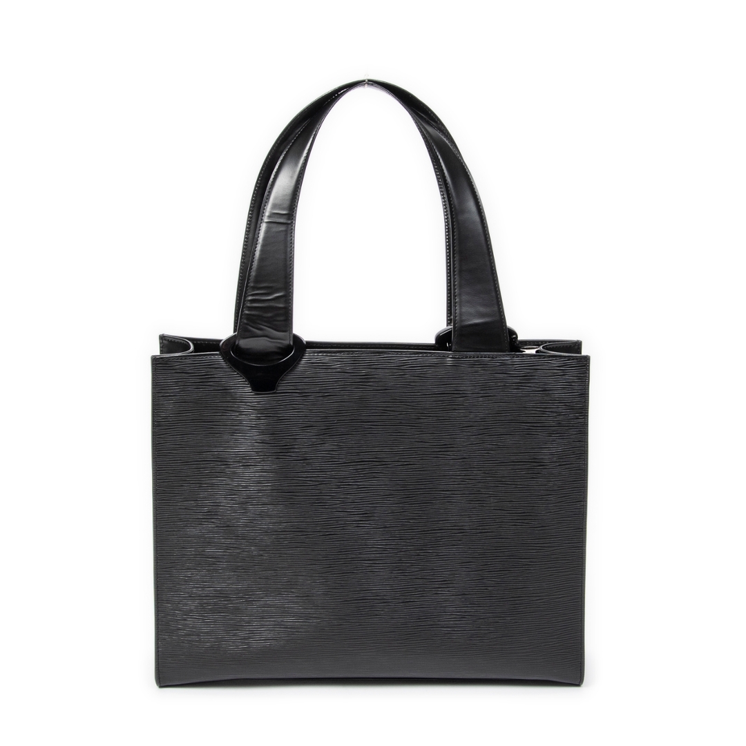 A vintage Louis Vuitton black calf leather Gemeaux bag with a certificate of authenticity. Approximately 30cm height, 38cm width.