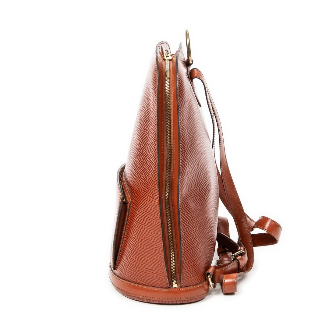 A vintage Louis Vuitton tan calf leather Gobelins bag with a certificate of authenticity. Approximately 34cm height, 30cm width.