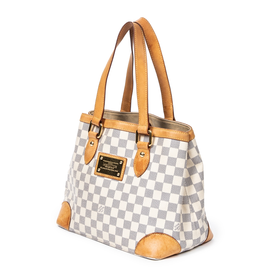 A vintage Ivory coated canvas Louis Vuitton Hampstead bag with a certificate of authenticity, Approximately 23cm height, 28cm width.
