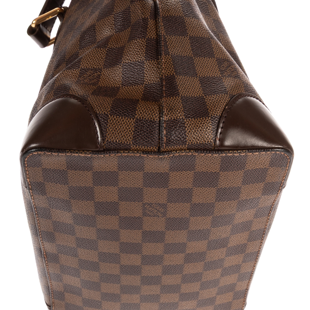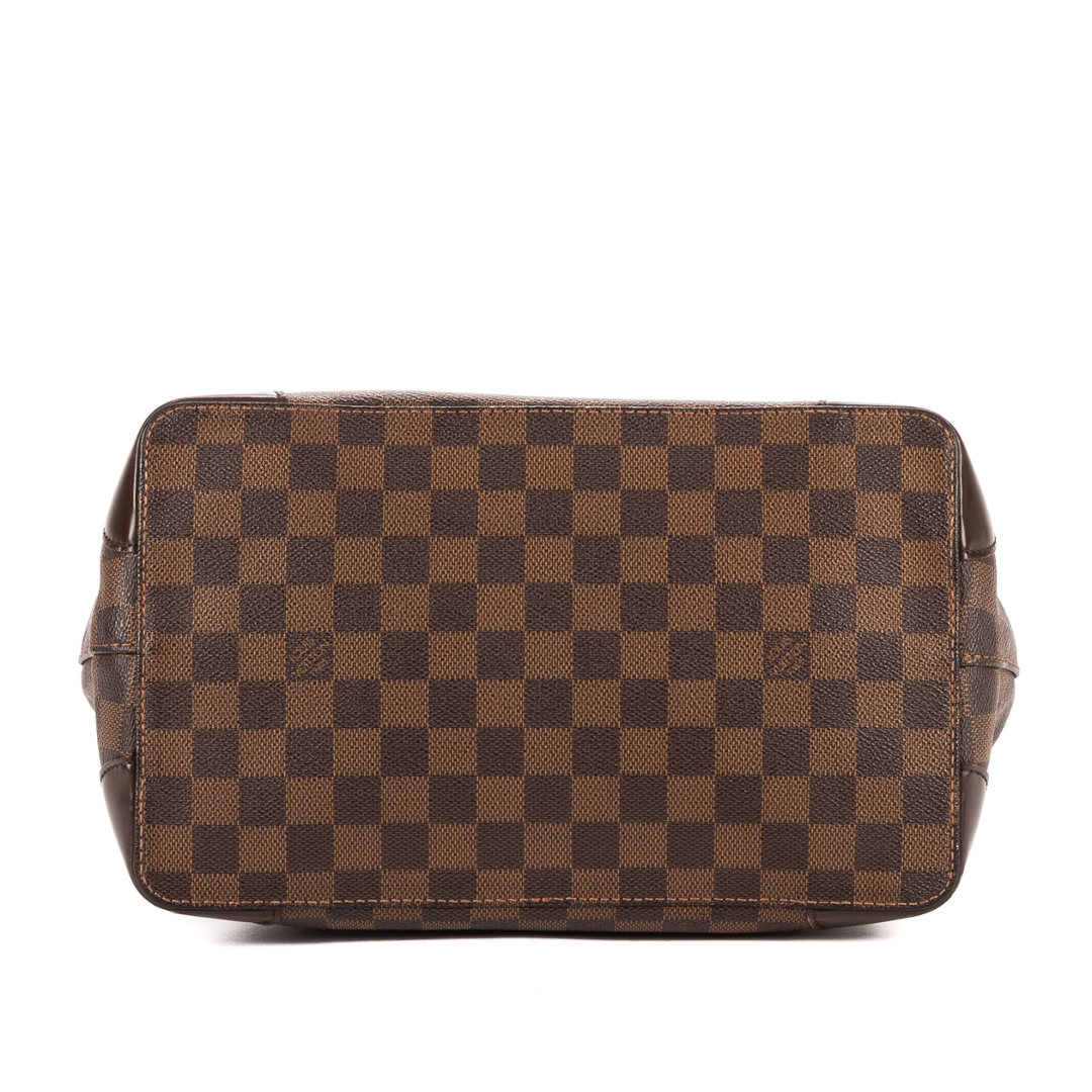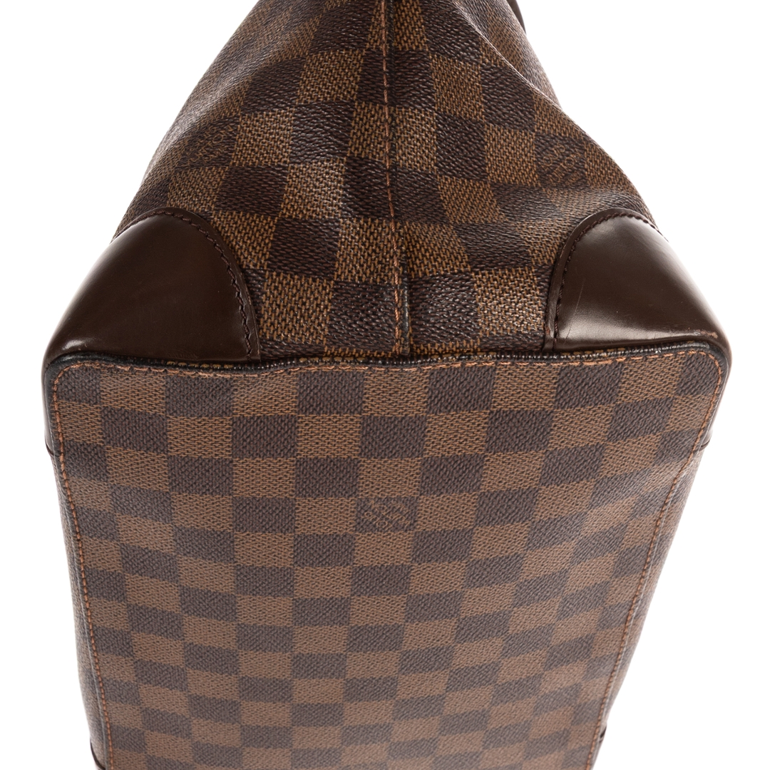 A vintage Louis Vuitton Hampstead bag crafted in dark brown Damier Ebene coated canvas, offering a compact and refined take on one of the brand’s most recognisable silhouettes. The structured design is enhanced by smooth leather trim, elegant shoulder handles, and a signature gold-tone Louis Vuitton plaque to the front, delivering a timeless piece with understated luxury.