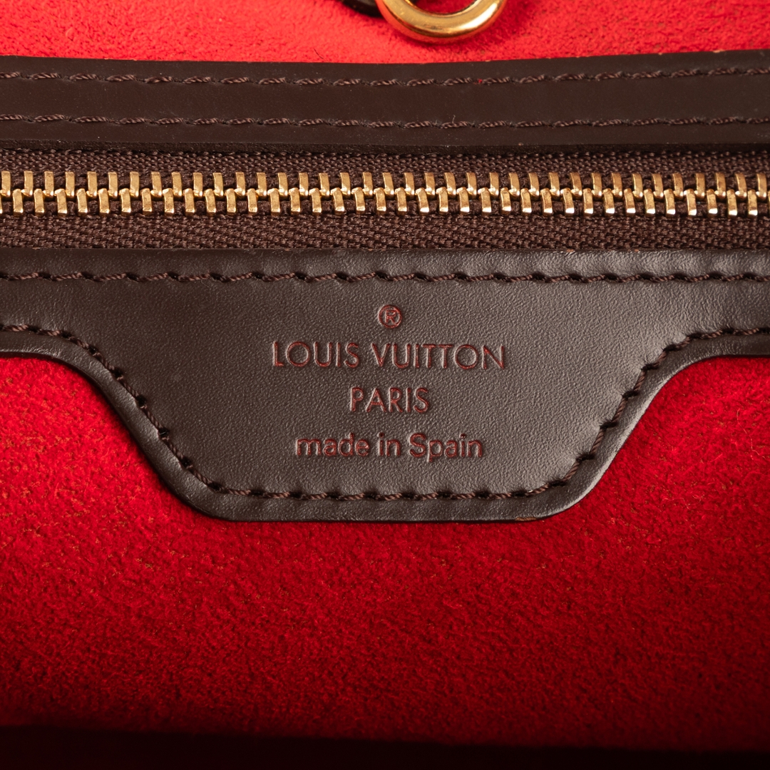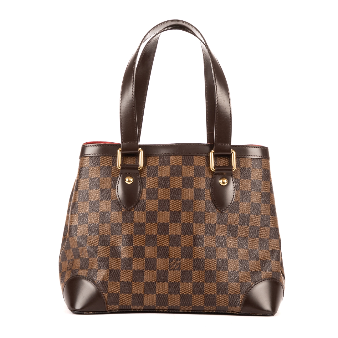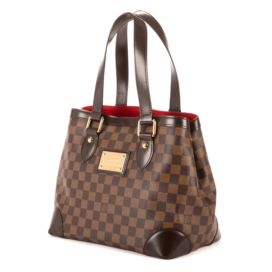 A vintage Louis Vuitton Hampstead bag crafted in dark brown Damier Ebene coated canvas, offering a compact yet elegant interpretation of one of the brand’s most recognisable designs. The structured silhouette is complemented by smooth leather trim, refined shoulder handles, and a signature gold-tone Louis Vuitton plaque to the front, creating a timeless piece with enduring appeal.