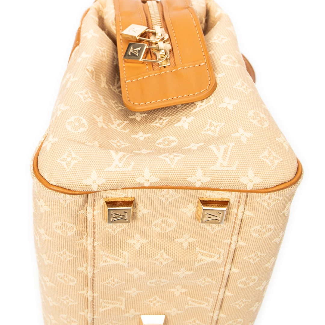 A vintage Louis Vuitton beige canvas Josephine bag with a certificate of authenticity, Approximately 19cm height, 27cm width.