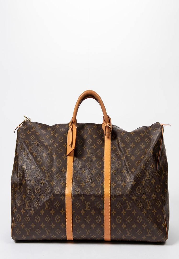 A vintage brown monogram canvas Louis Vuitton Keepall with a certificate of authenticity, Approximately 26cm height, 60cm width.