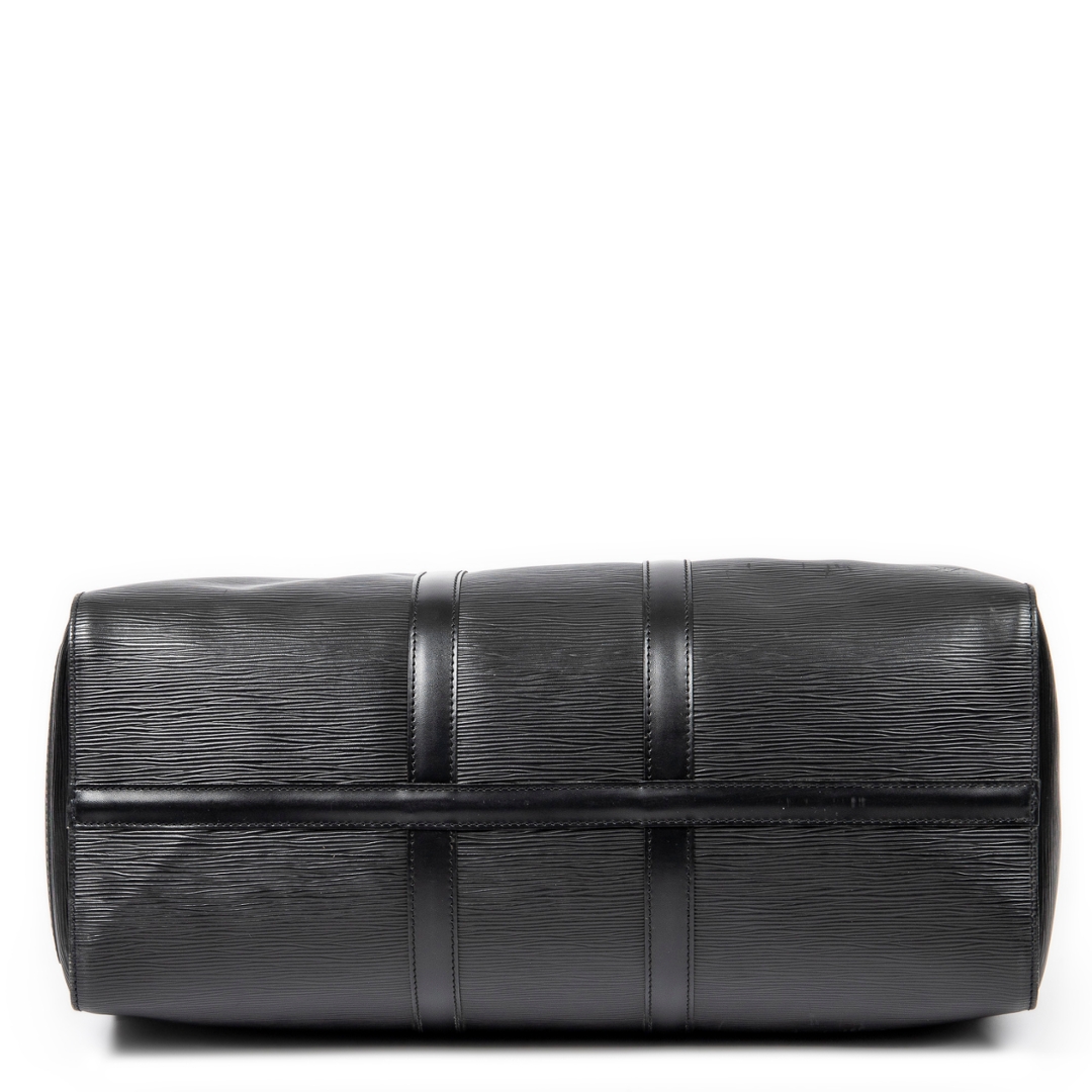 Complete with a certificate of authenticity, this black leather Keepall represents a timeless and highly sought-after Louis Vuitton travel piece with enduring appeal.
