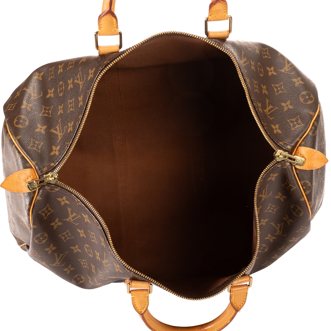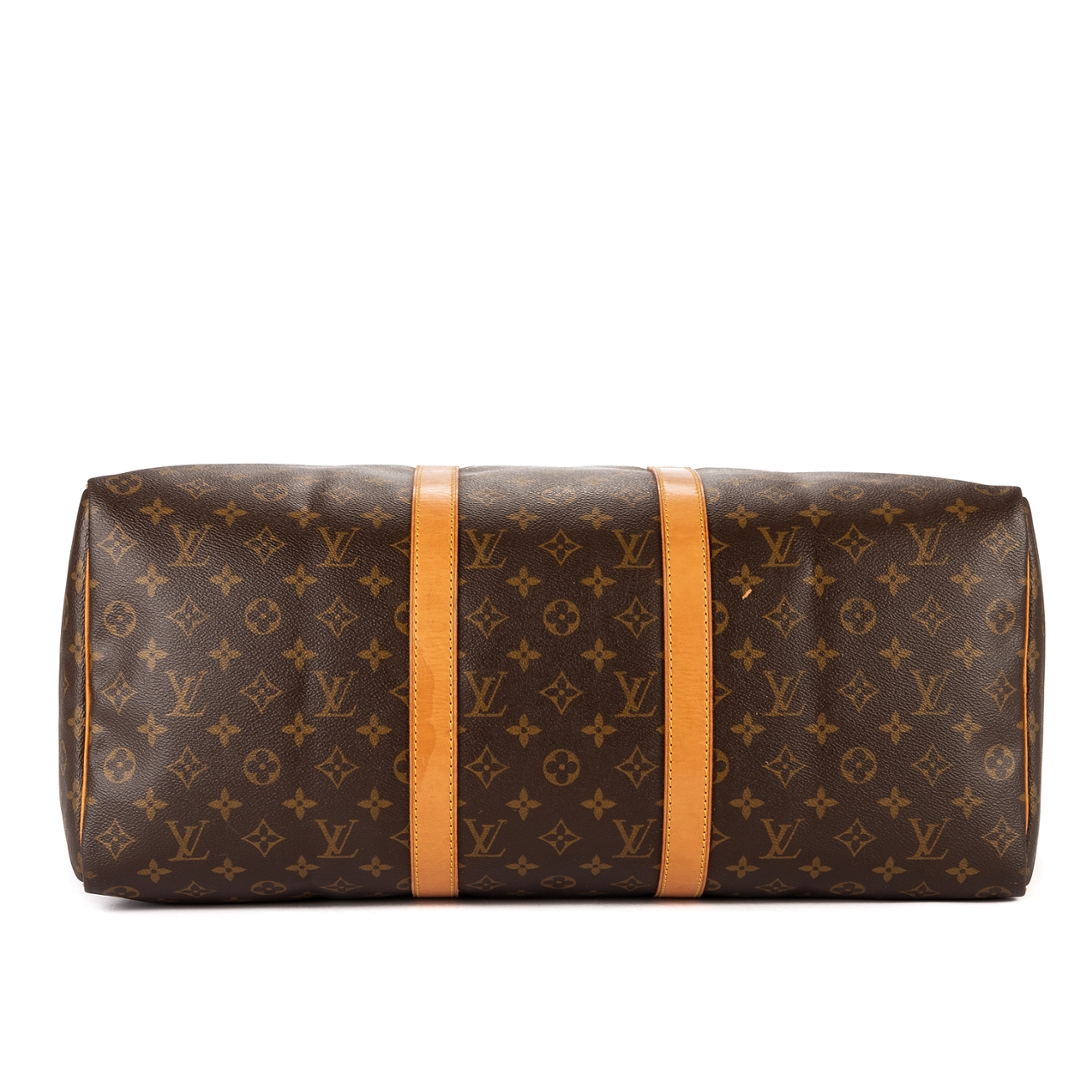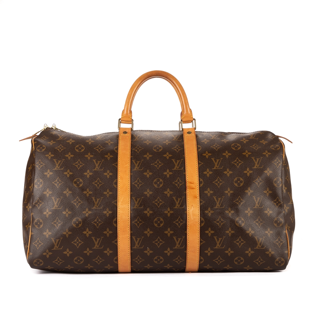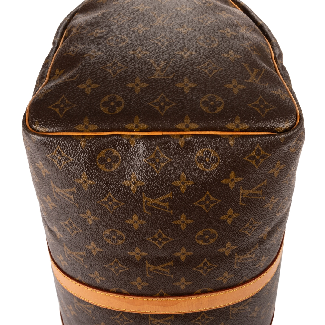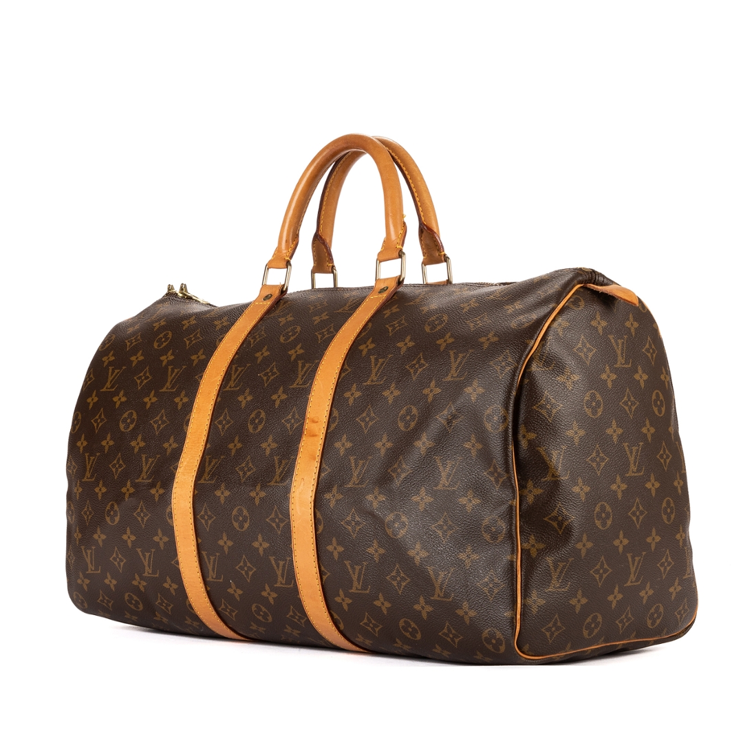 A vintage Louis Vuitton monogram coated canvas Keepall bag with a certificate of authenticity. Approximately 26cm height, 50cm width.