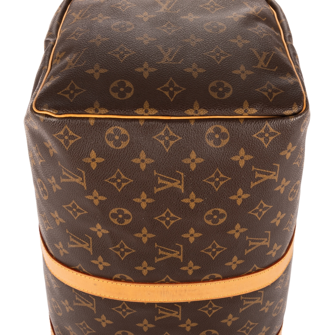 A vintage Louis Vuitton monogram coated canvas Keepall bag with a certificate of authenticity, Approximately 26cm height, 50cm width.