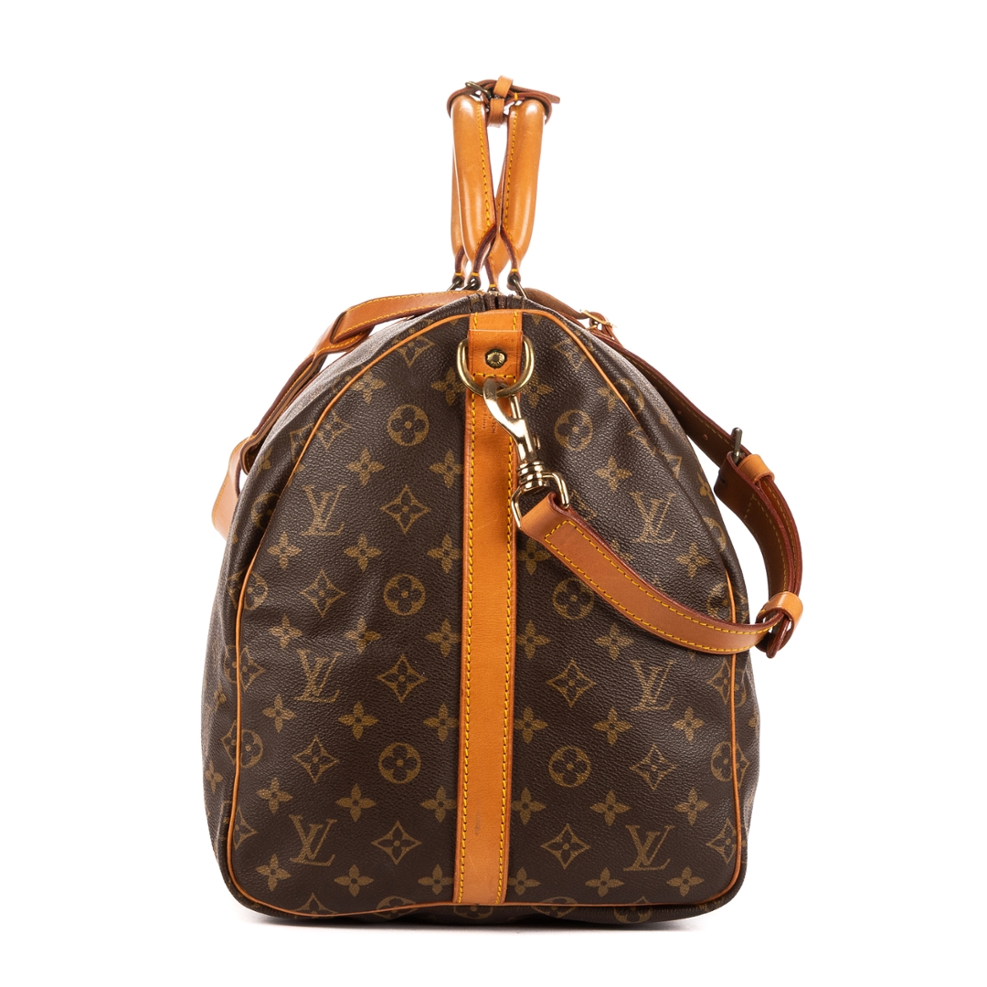 A vintage Louis Vuitton monogram coated canvas Keepall bag with a certificate of authenticity, Approximately 25cm height, 55cm width.