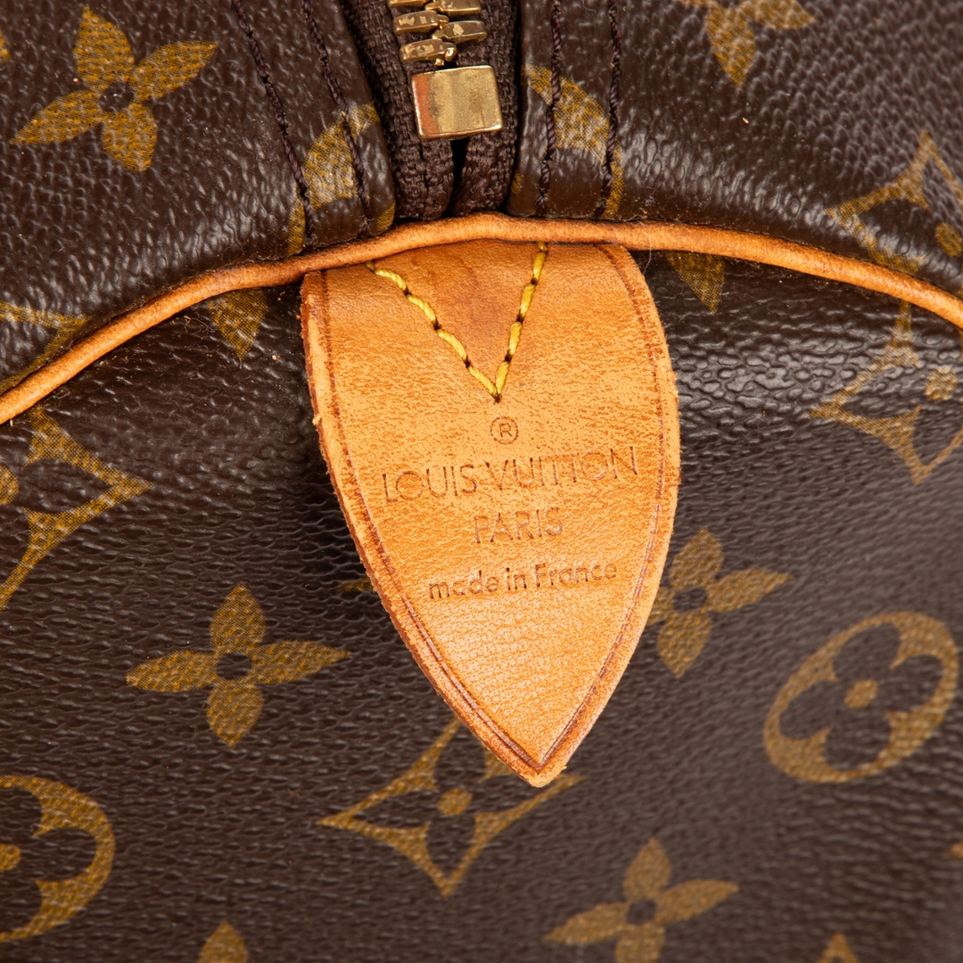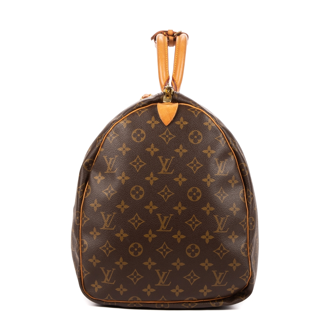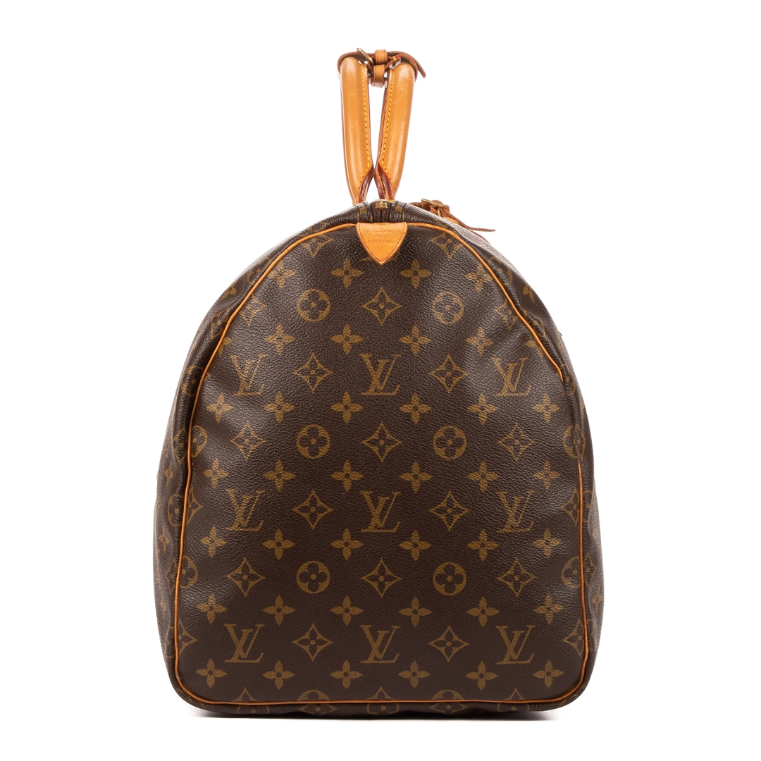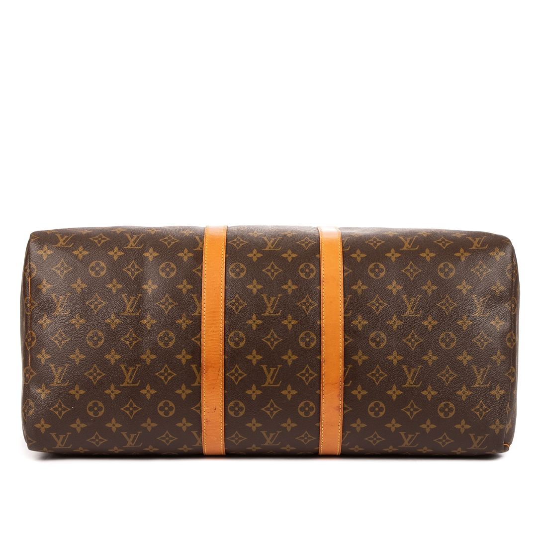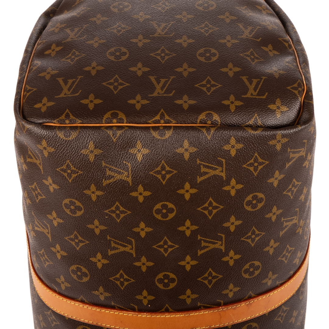 A vintage Louis Vuitton monogram coated canvas Keepall bag with a certificate of authenticity. Approximately 28cm height, 55cm width.
