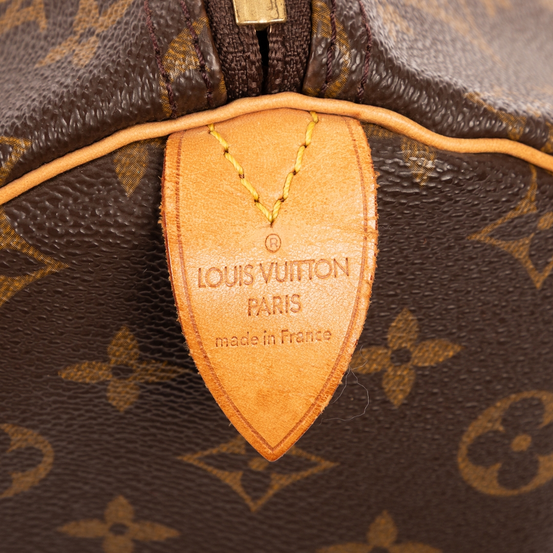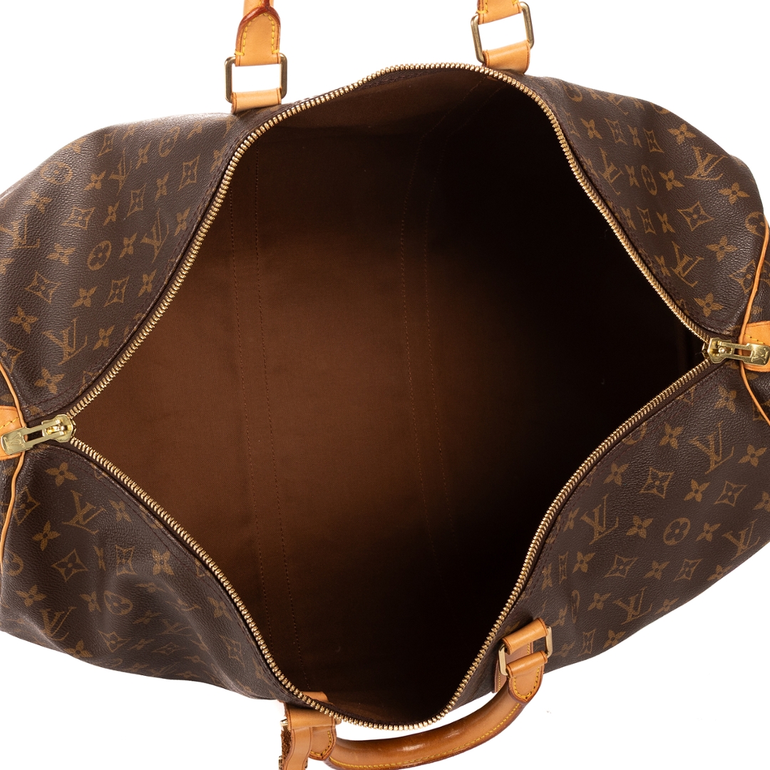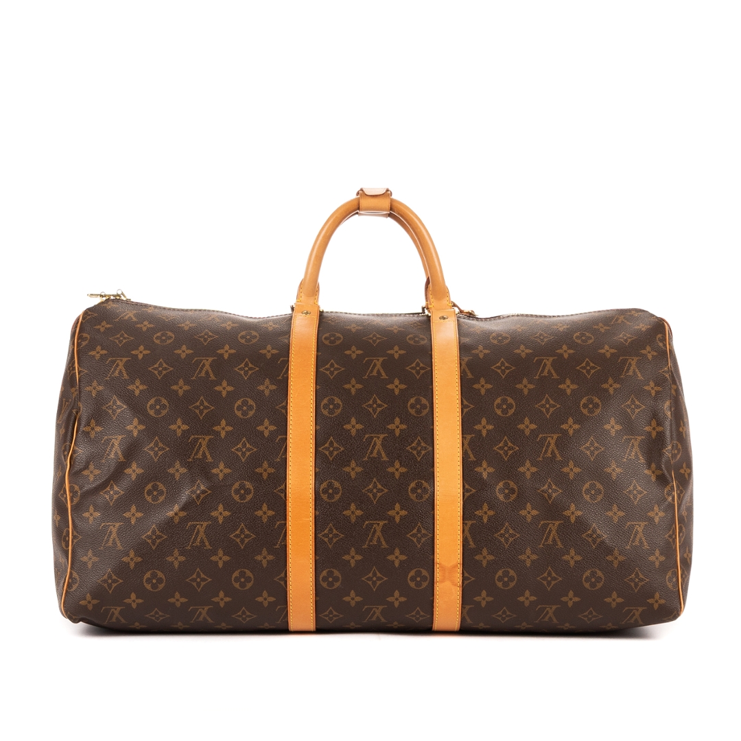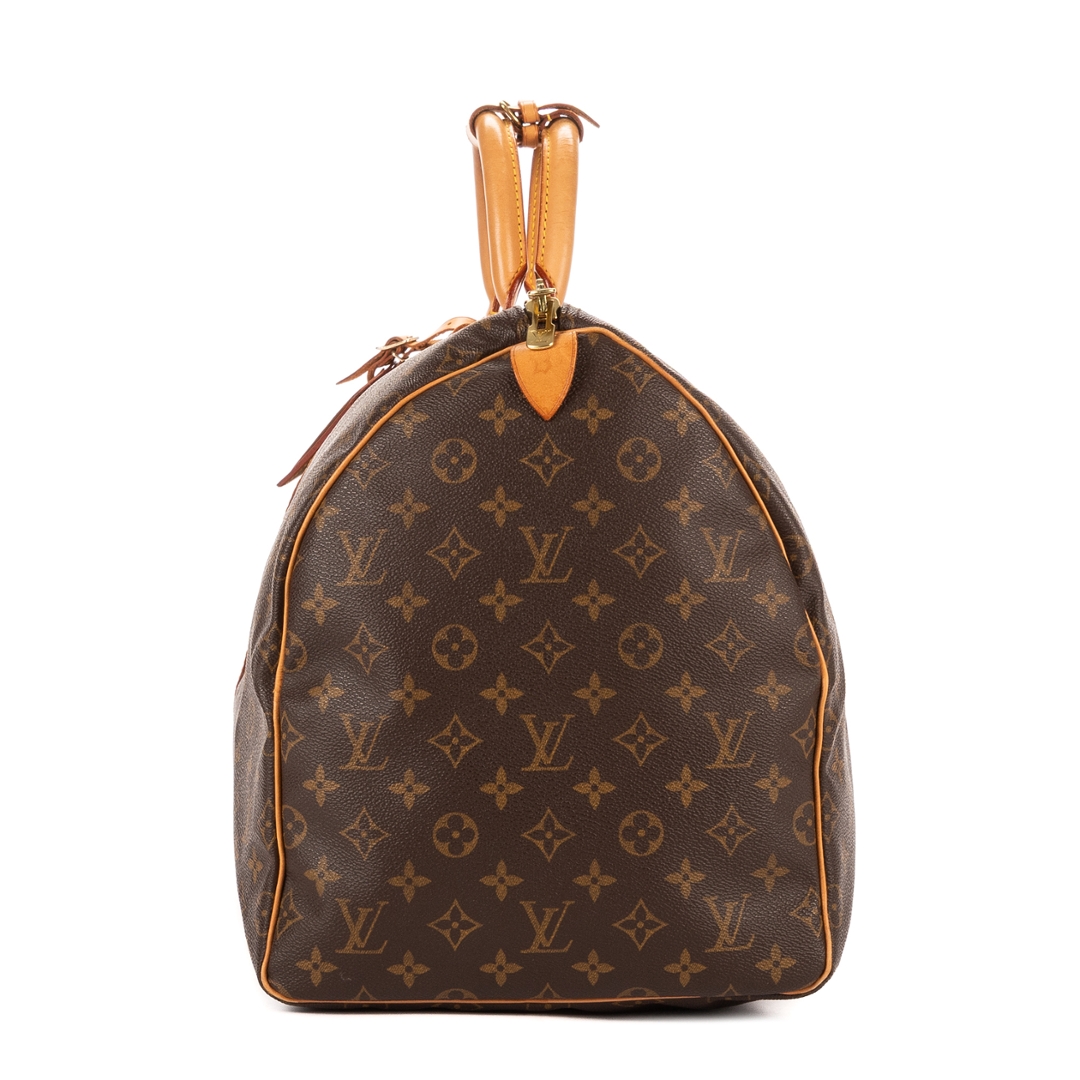 A vintage Louis Vuitton monogram coated canvas Keepall bag with a certificate of authenticity. Approximately 28cm height, 55cm width.
