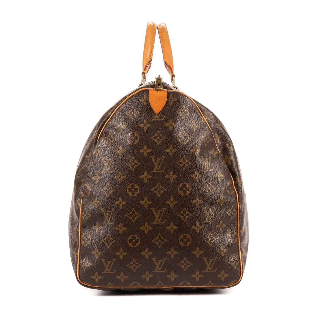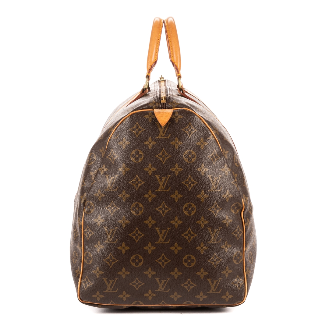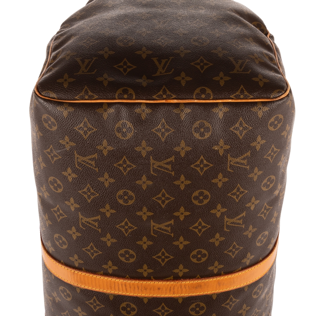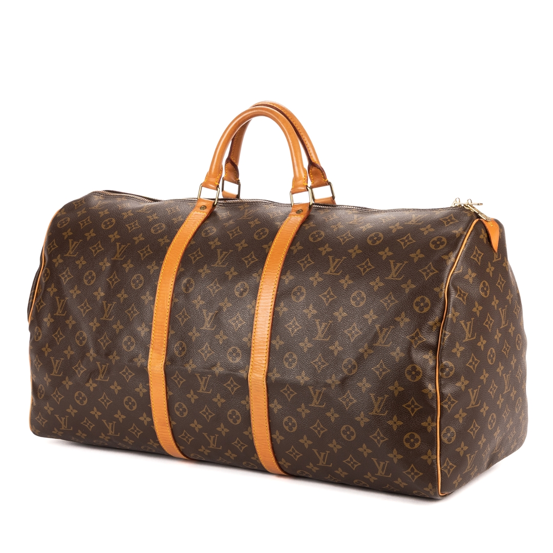 A vintage Louis Vuitton monogram coated canvas Keepall bag with a certificate of authenticity. Approximately 30cm height, 60cm width.