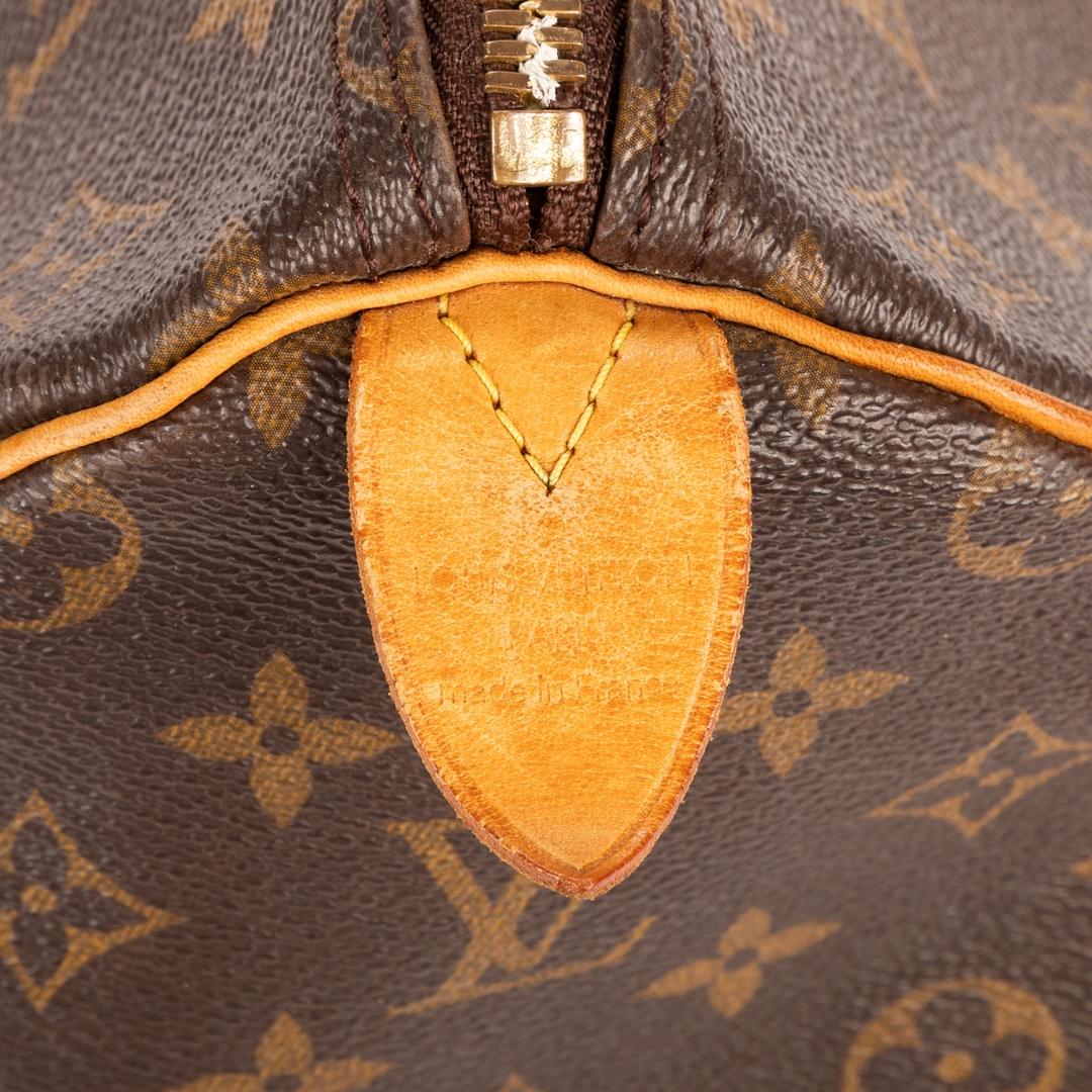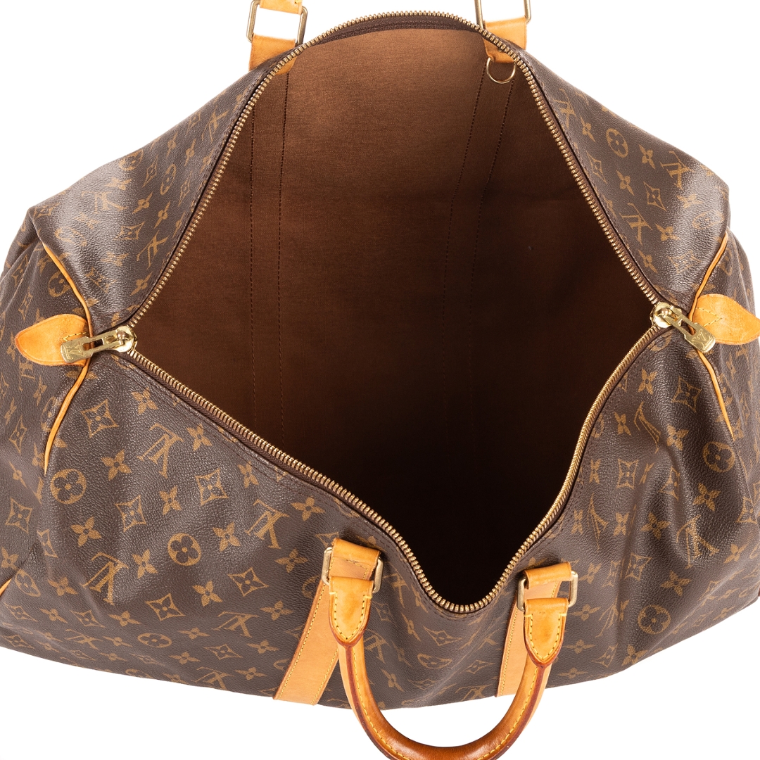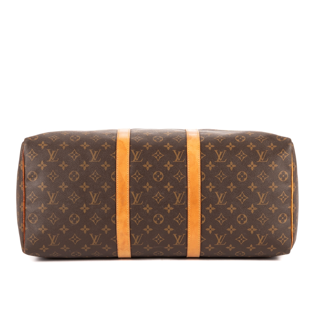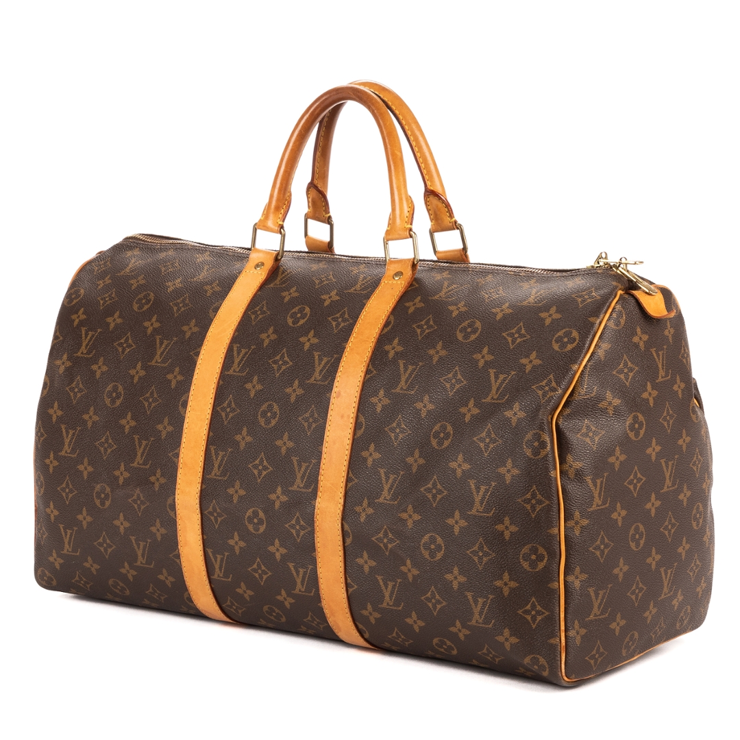 A vintage Louis Vuitton monogram coated canvas Keepall bag with a certificate of authenticity. Approximately 25cm height, 48cm width.