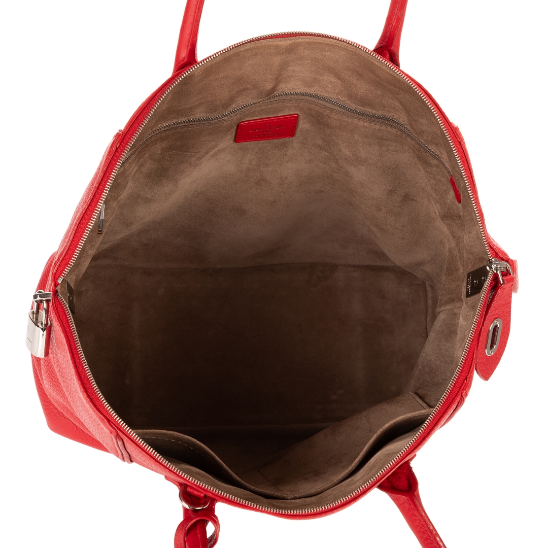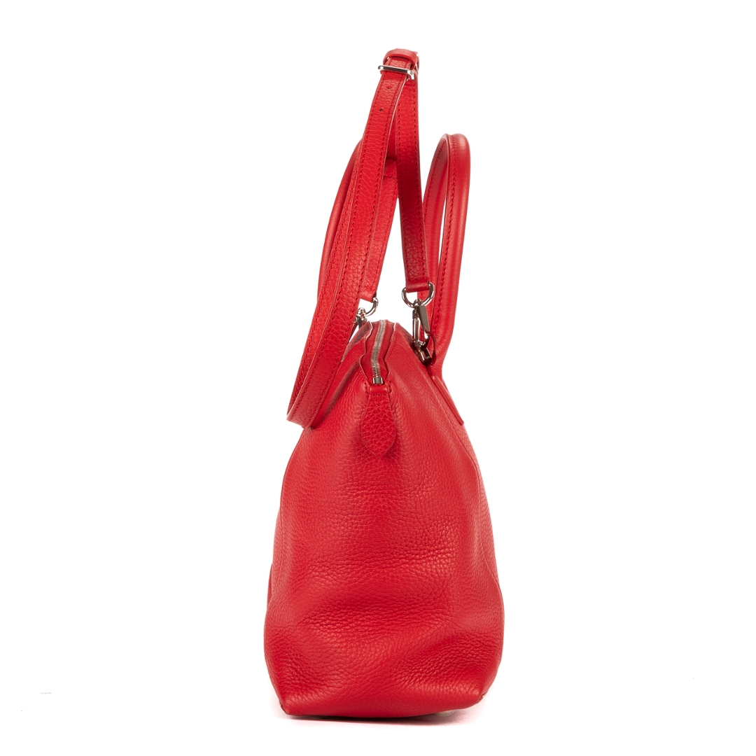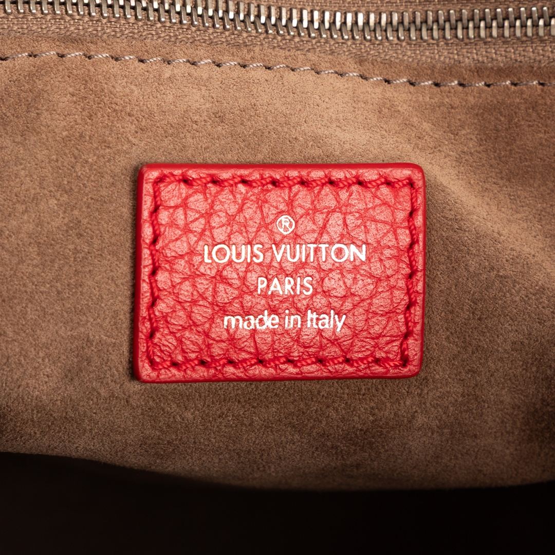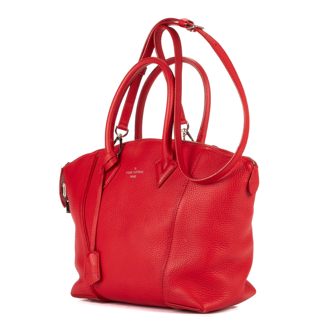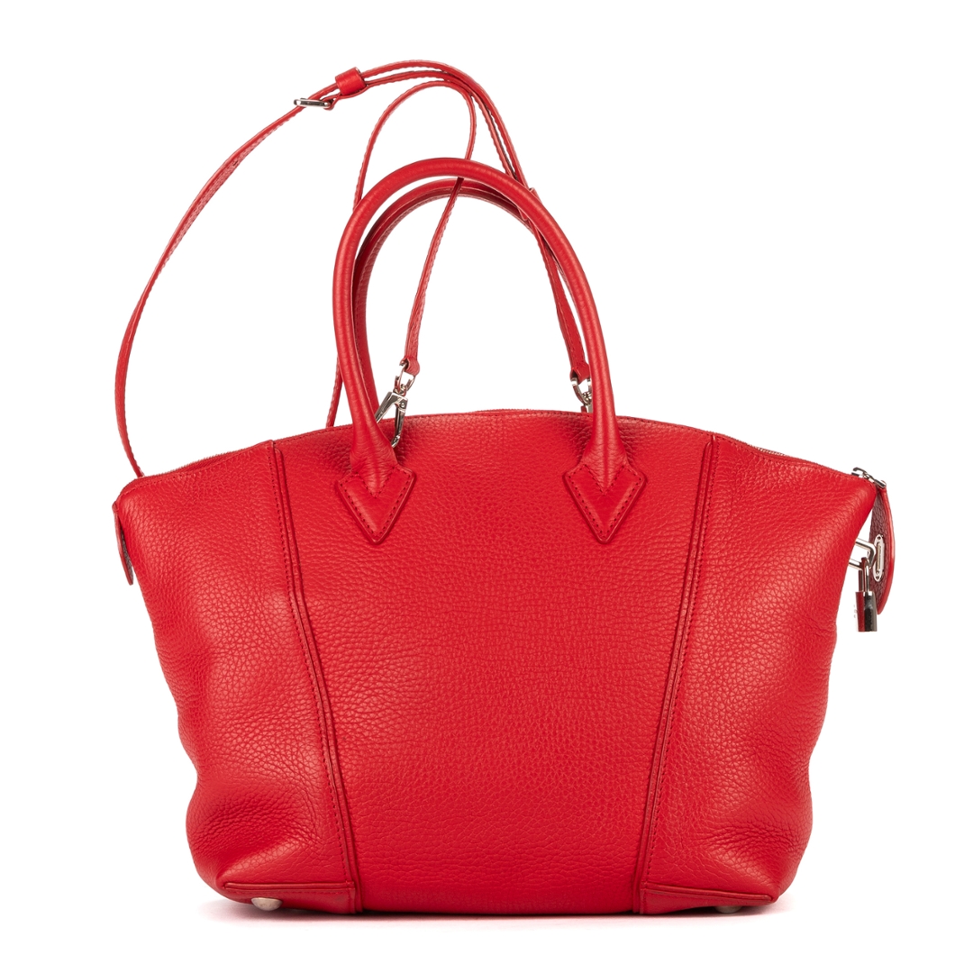 A vintage Louis Vuitton red calf leather Lockit bag with a certificate of authenticity, Approximately 21cm height, 27cm width.