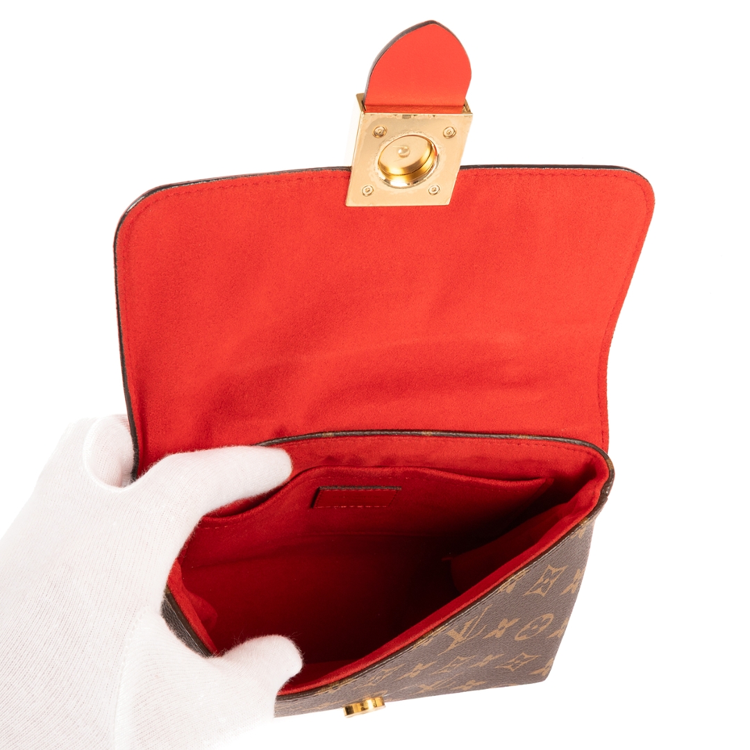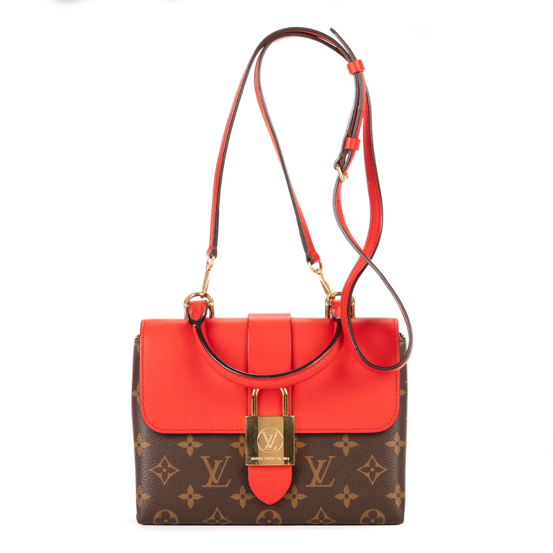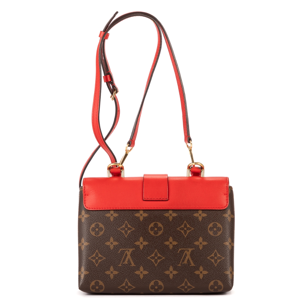 A vintage Louis Vuitton brown/red coated canvas Locky BB bag with a certificate of authenticity, Approximately 15cm height, 21cm width.