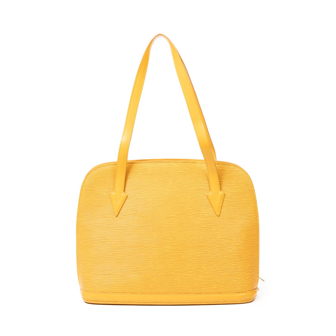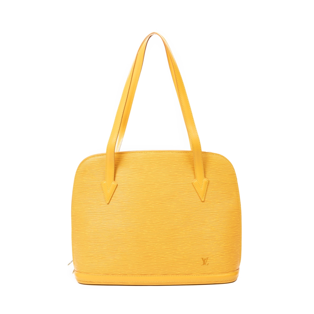 A vintage Louis Vuitton yellow calf leather Lussac bag with a certificate of authenticity. Approximately 30cm height, 38cm width.