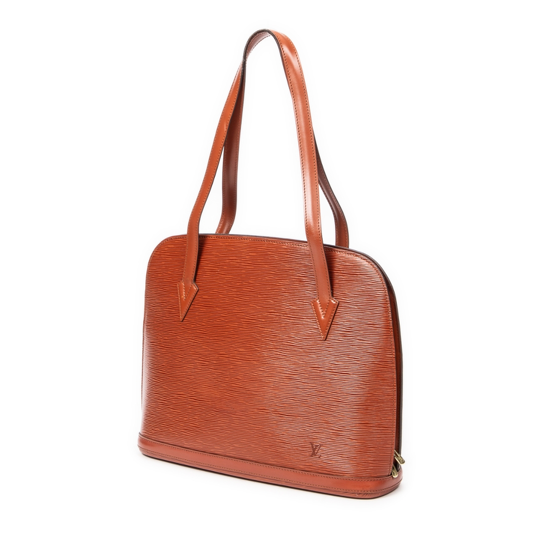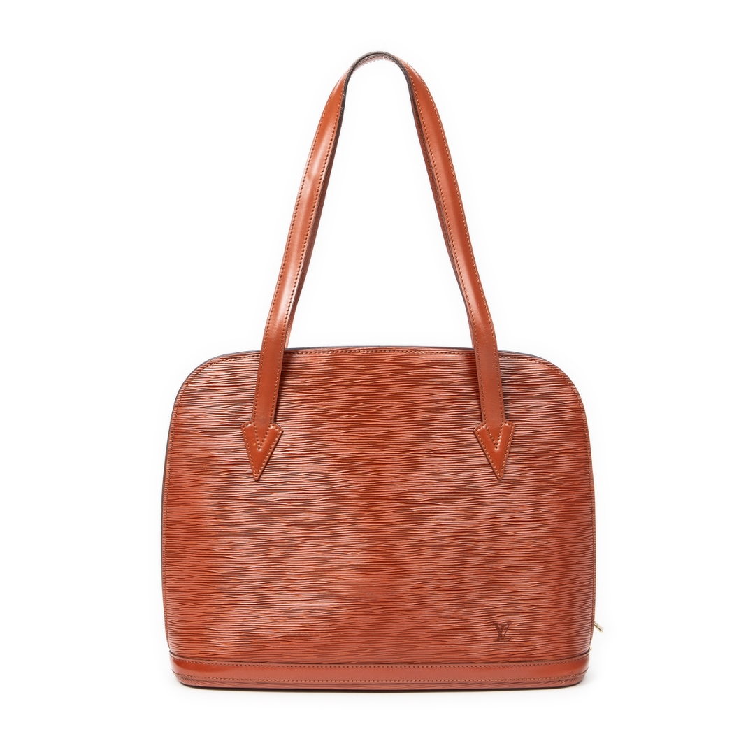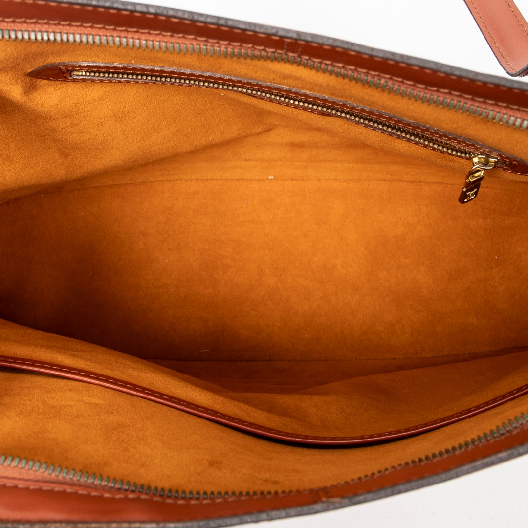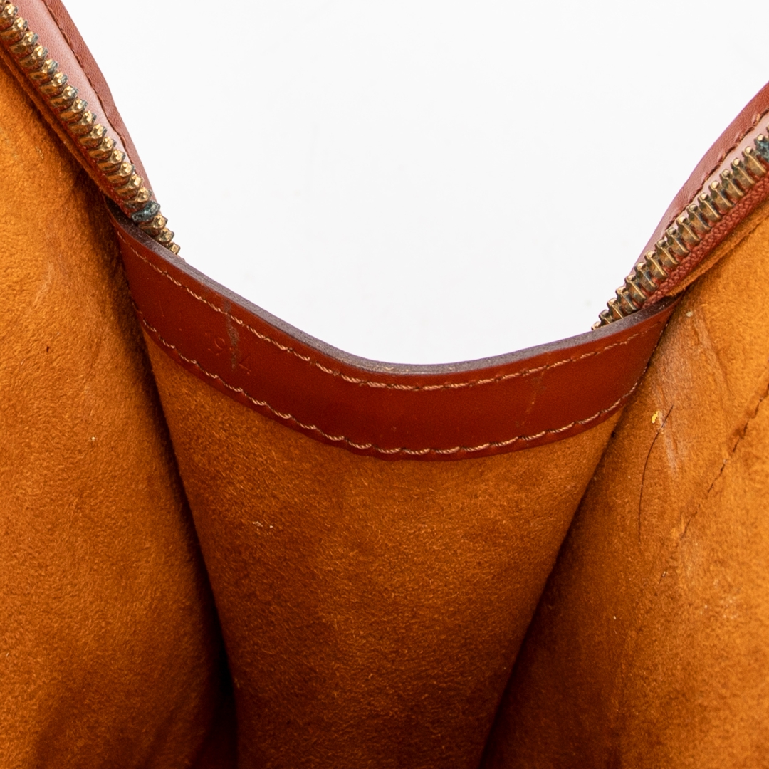 A vintage Louis Vuitton tan calf leather Lussac bag with a certificate of authenticity. Approximately 30cm height, 38cm width.