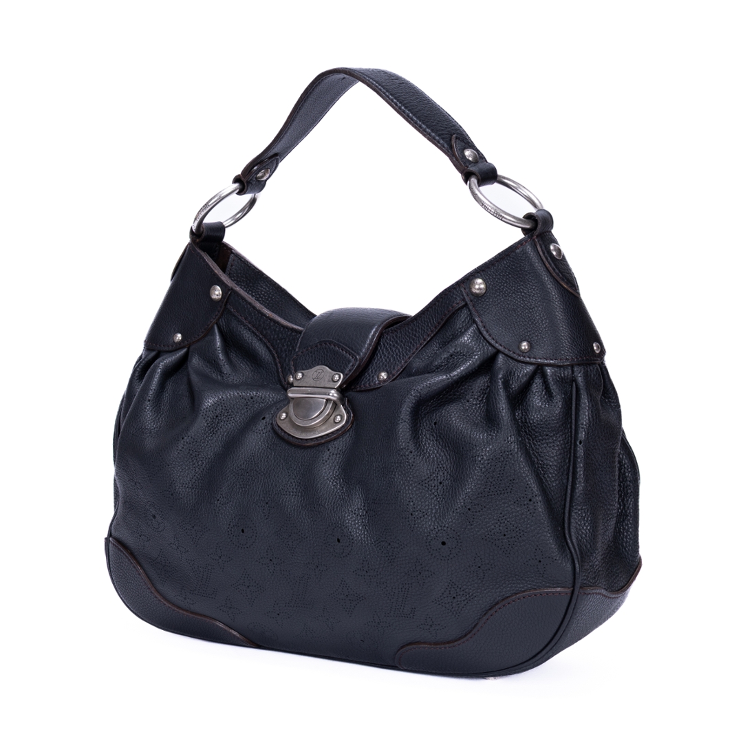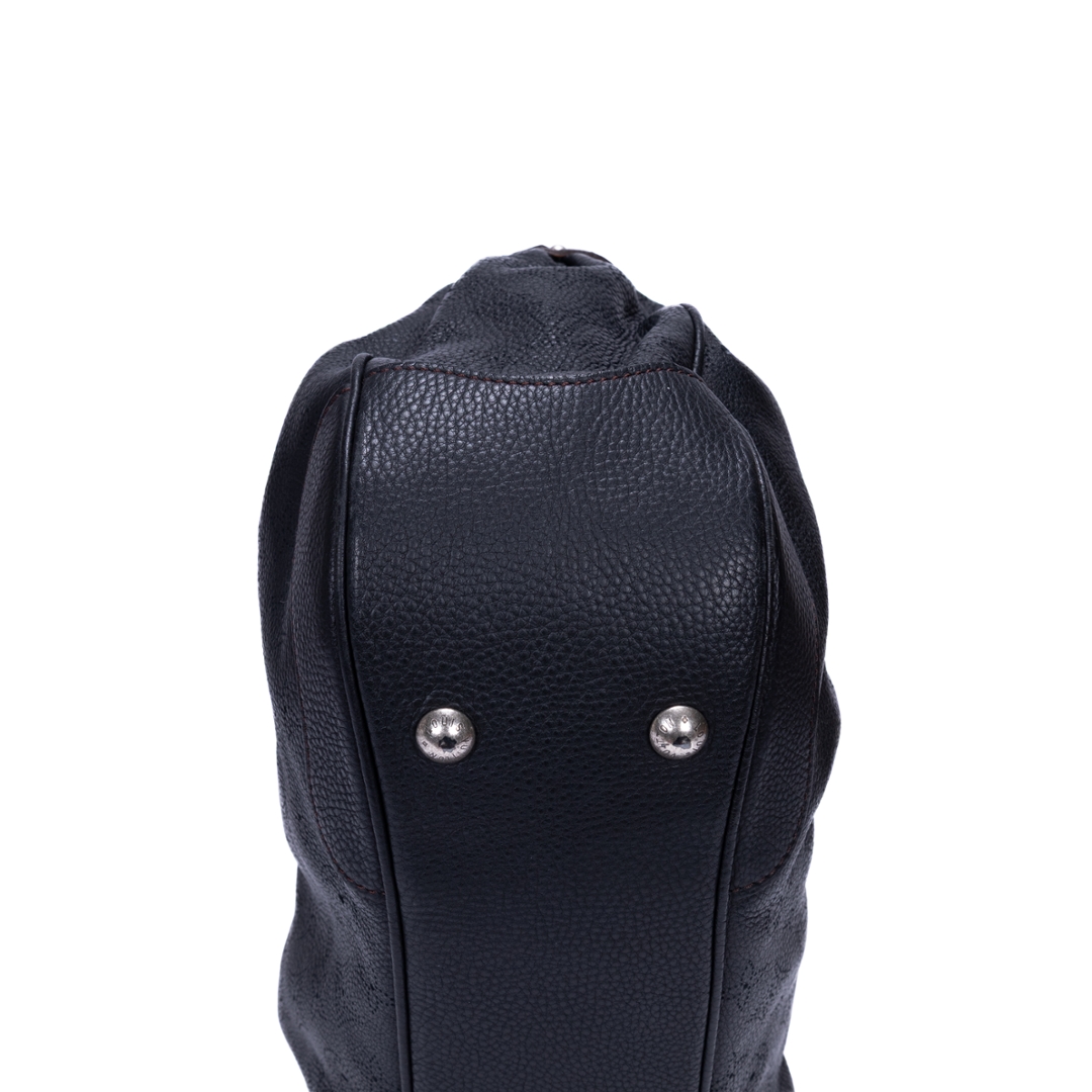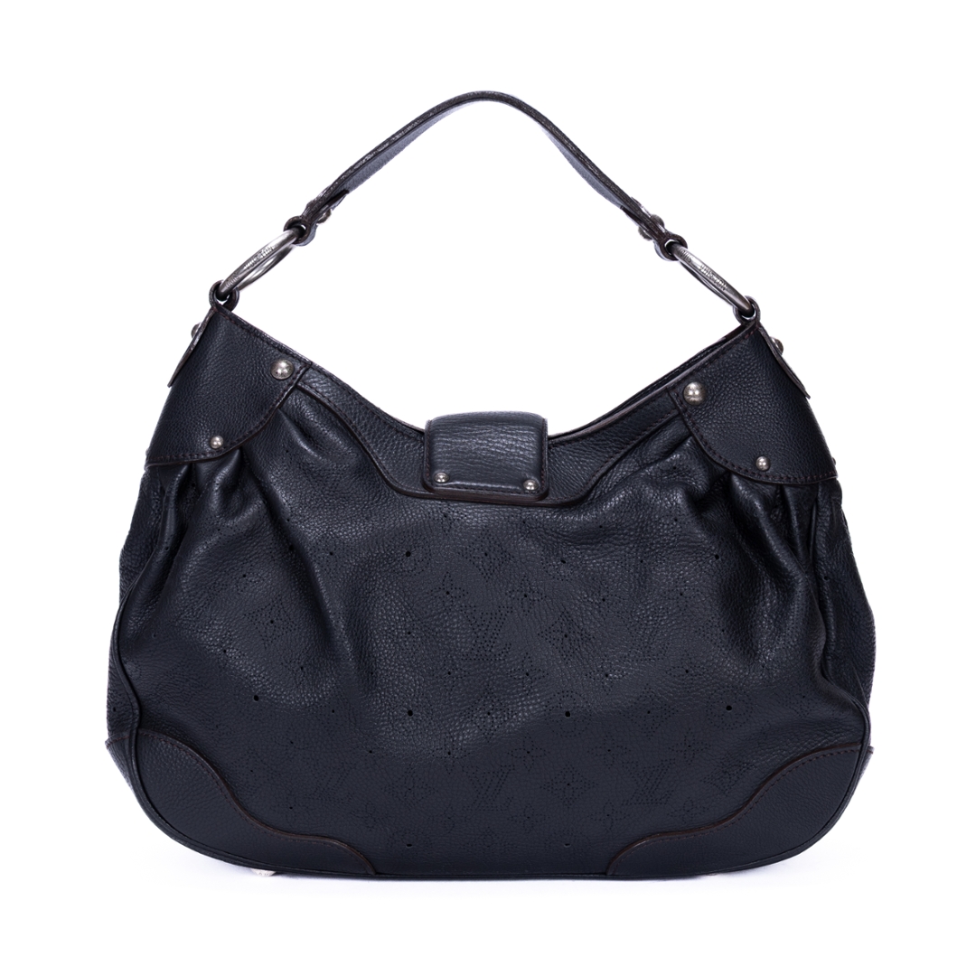 A vintage Louis Vuitton black calf leather Mahina Solar bag with a certificate of authenticity. Approximately 32cm height, 39cm width.