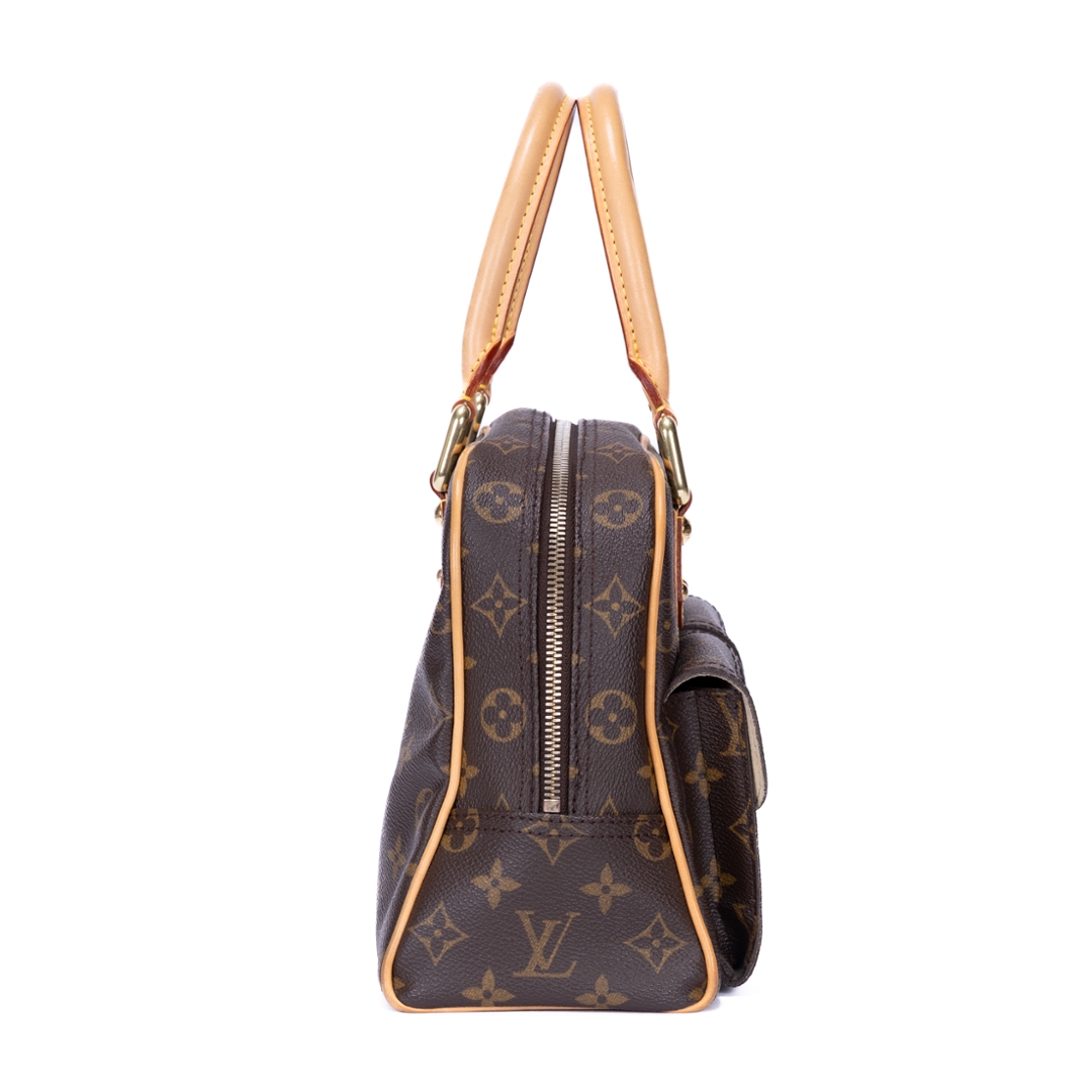 A vintage Louis Vuitton monogram coated canvas Manhattan bag with a certificate of authenticity. Approximately 21cm height, 30cm width.