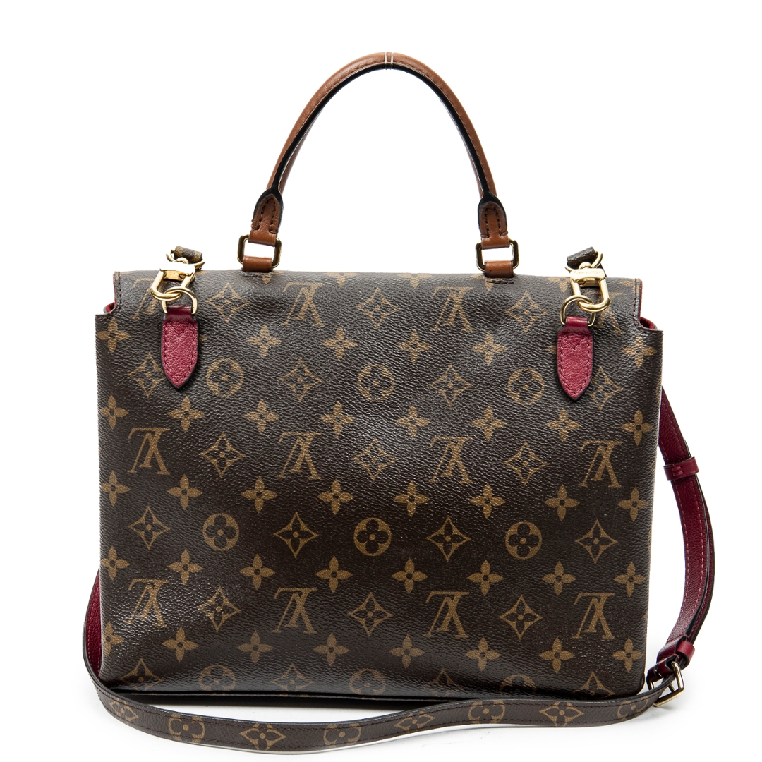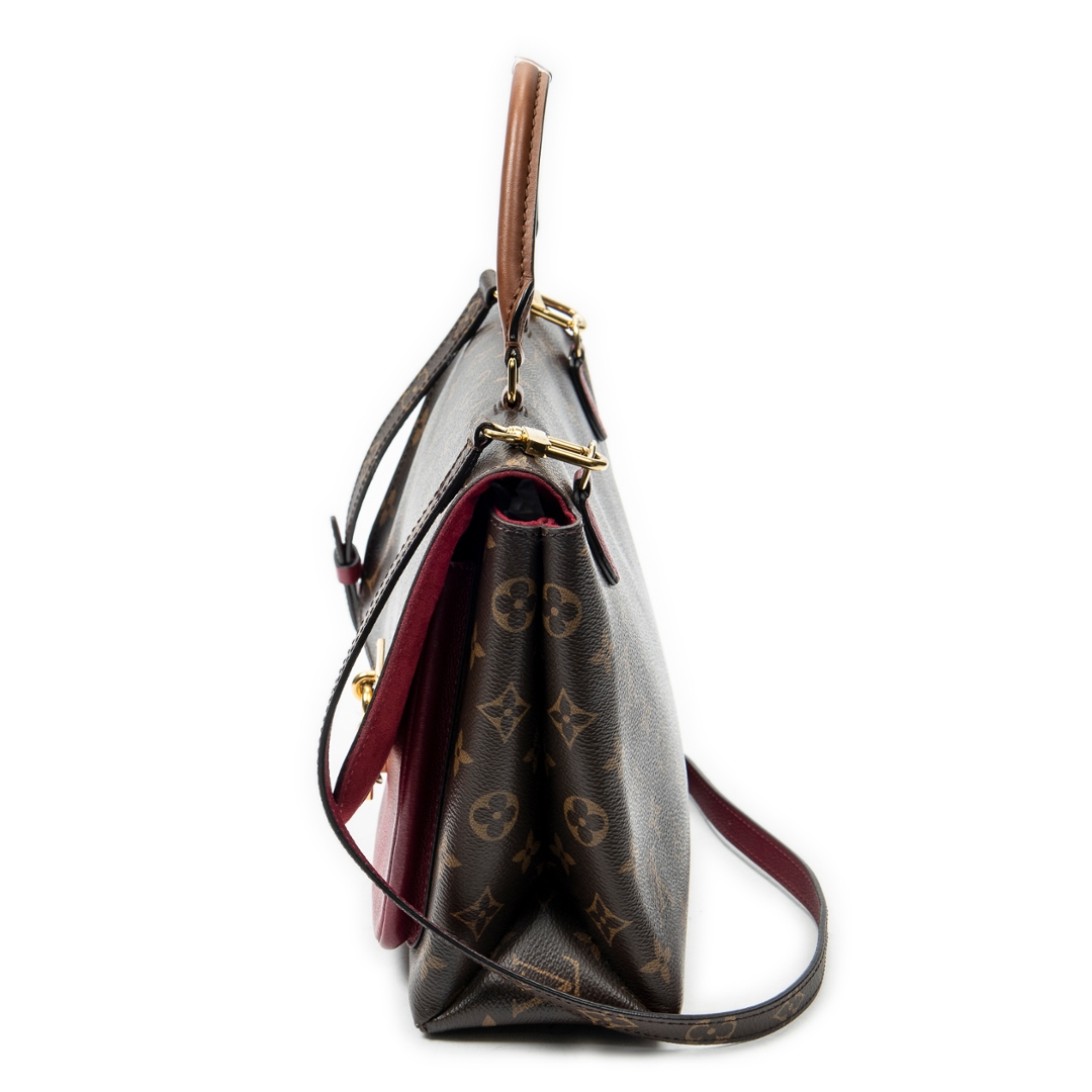 A vintage Louis Vuitton brown/pink coated canvas Marignan bag with a certificate of authenticity. Approximately 21cm height, 28cm width.