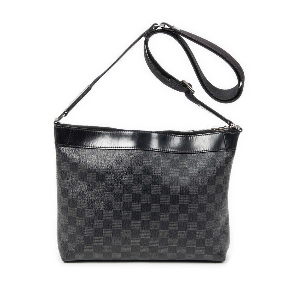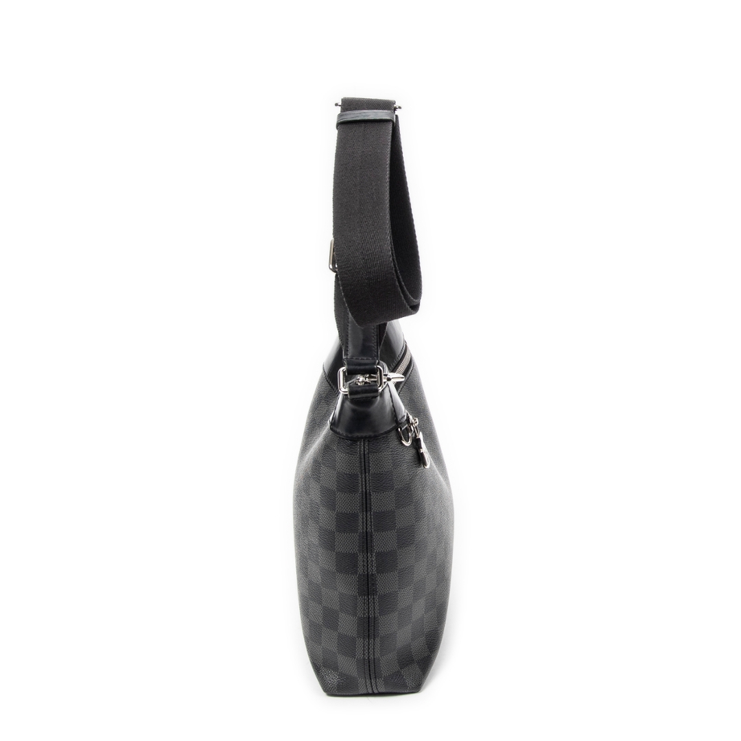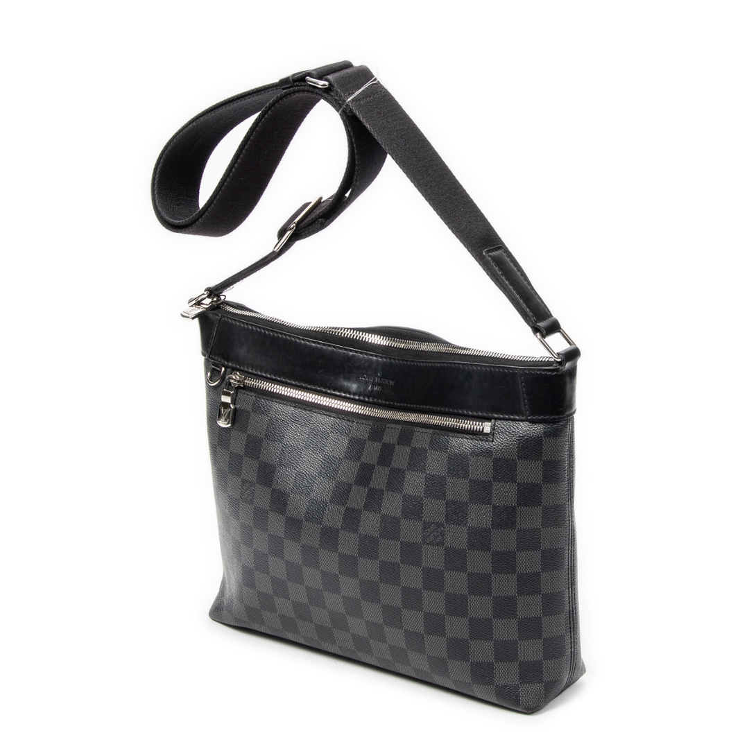 A vintage Louis Vuitton Mick bag crafted in the sleek black Damier Graphite coated canvas, offering a modern and understated take on the brand’s iconic design language. The clean lines are complemented by smooth leather trim, silver-tone hardware, and subtle Louis Vuitton branding, creating a versatile piece suited to both casual and smart settings.