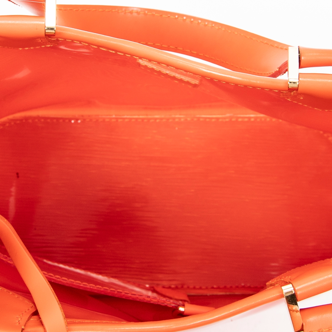 A vintage Louis Vuitton orange calf leather Mini Lagoon Bay bag with a certificate of authenticity. Approximately 20cm height, 24cm width.