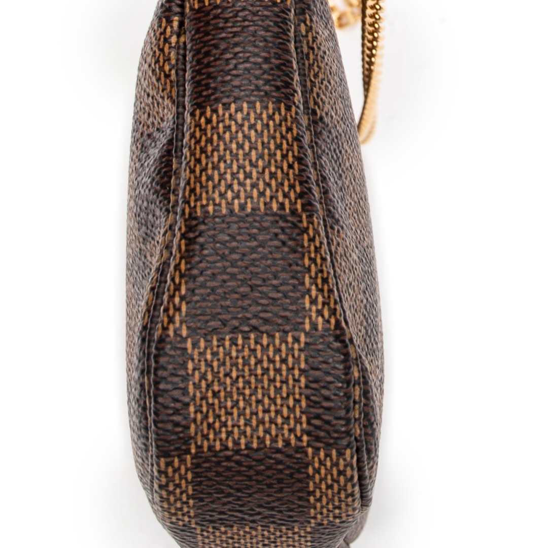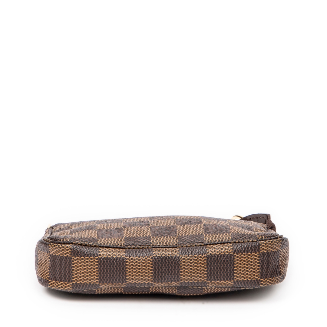 A vintage Louis Vuitton damier coated canvas Mini Pochette Accessoires bag with a certificate of authenticity. Approximately 10cm height, 15cm width.