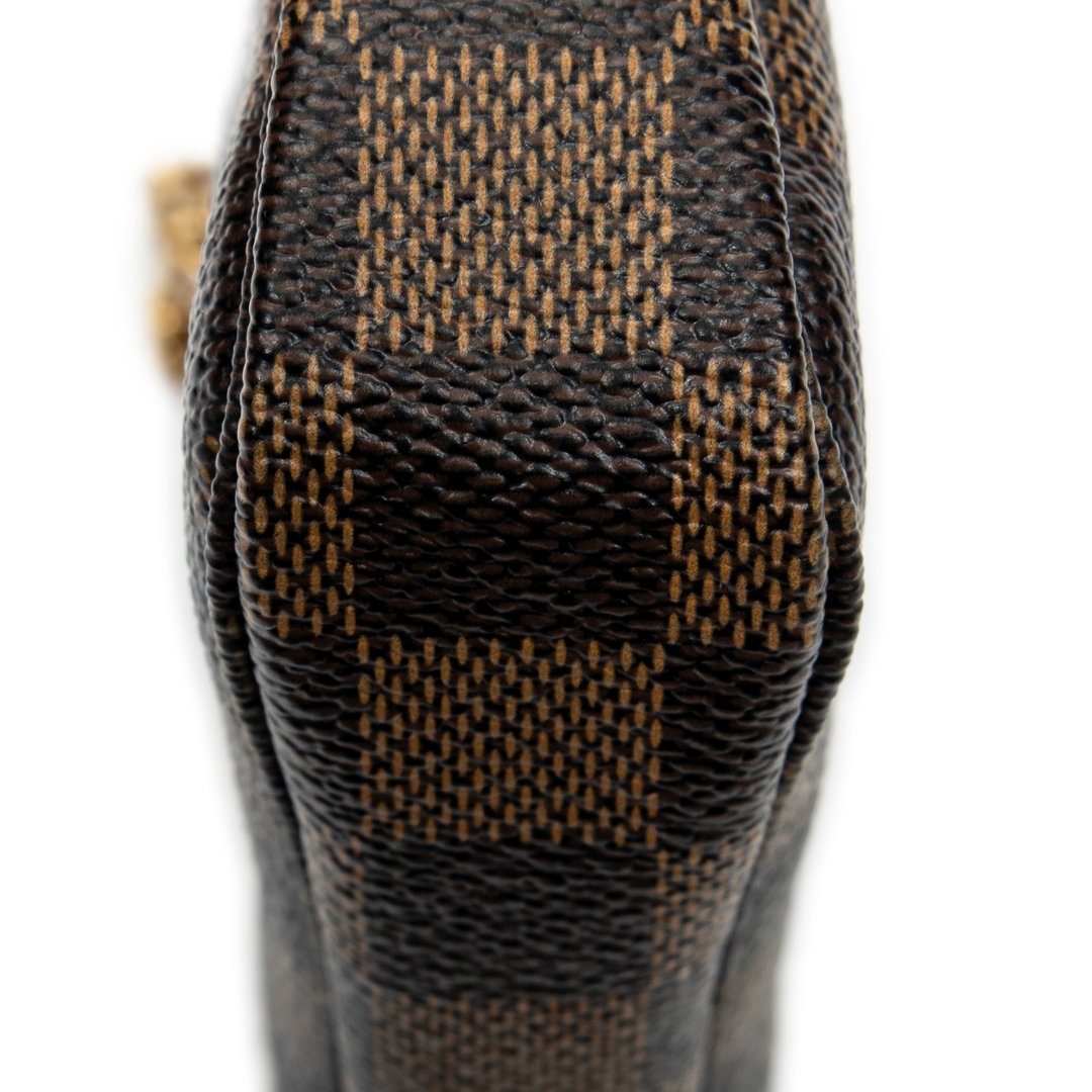 A vintage Louis Vuitton brown/red coated canvas Mini Pochette Accessoires bag with a certificate of authenticity. Approximately 10cm height, 15cm width.