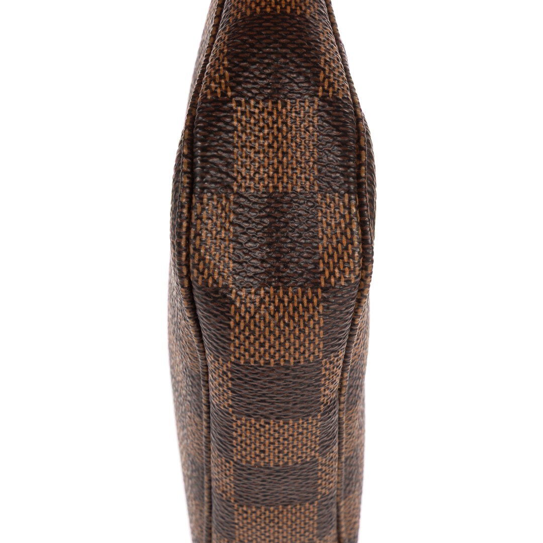 A vintage Louis Vuitton damier coated canvas Mini Pochette Accessoires bag with a certificate of authenticity. Approximately 10cm height, 15cm width.