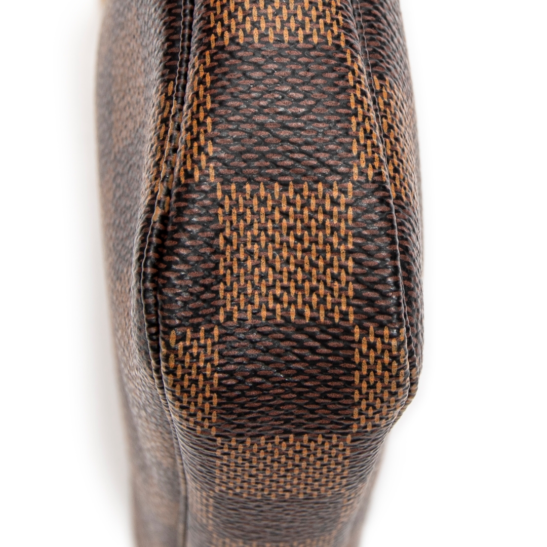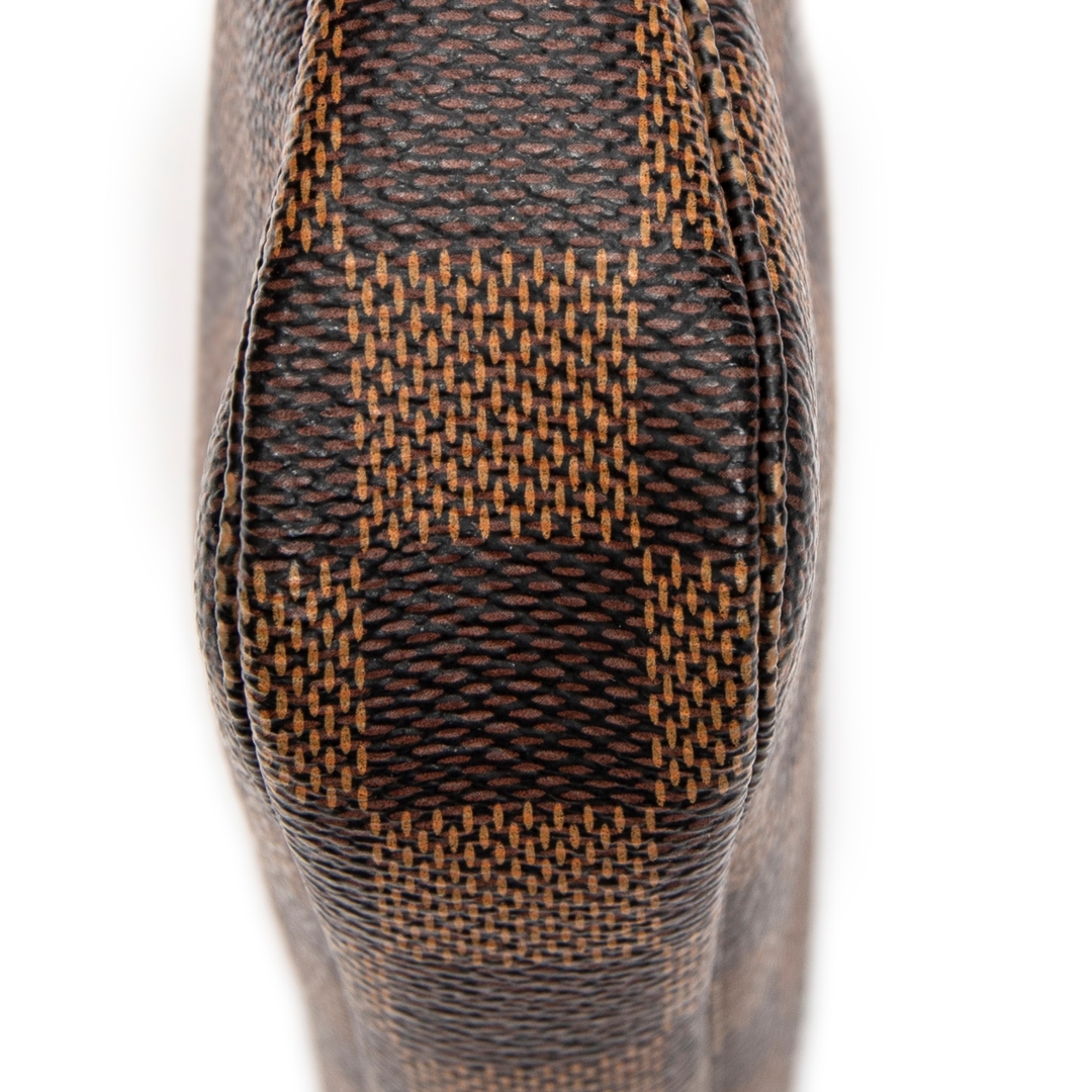 A vintage Louis Vuitton damier coated canvas Mini Pochette Accessoires bag with a certificate of authenticity. Approximately 10cm height, 15cm width.