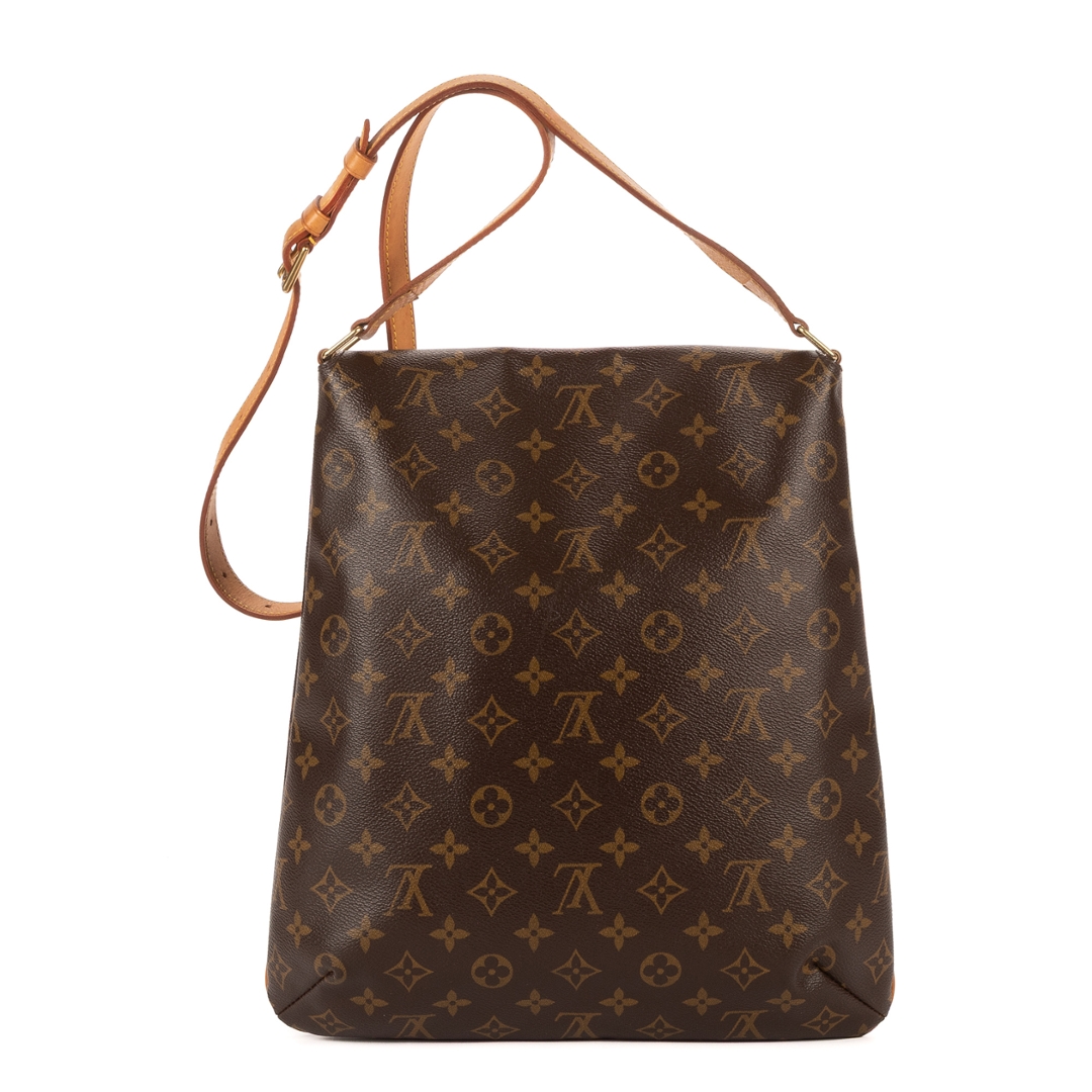 A vintage Louis Vuitton Brown Coated Canvas Musette Salsa Long Strap bag with a certificate of authenticity. Approximately 37cm height, 29cm width.