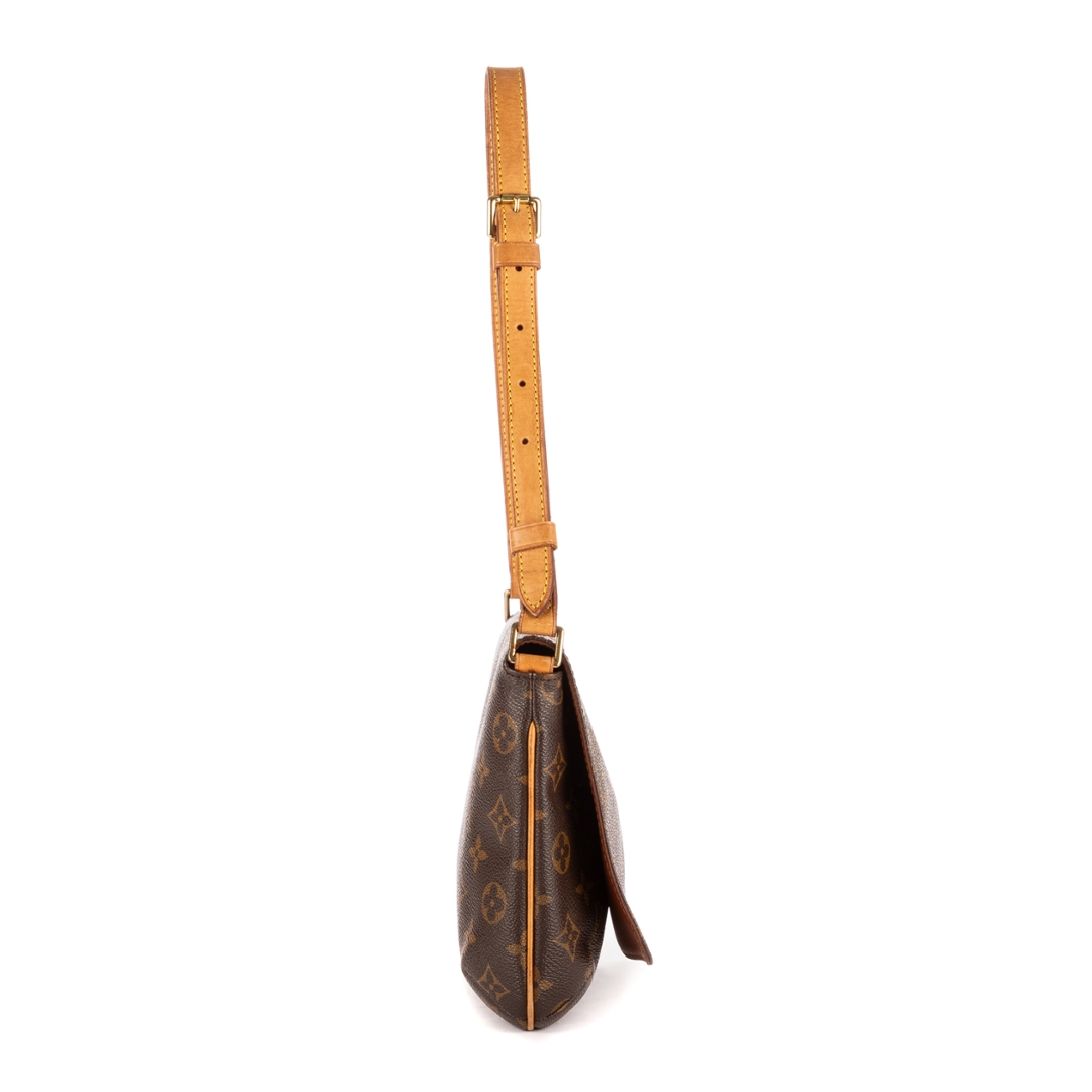 A vintage Louis Vuitton monogram coated canvas Musette Tango bag with a certificate of authenticity. Approximately 20cm height, 25cm width.