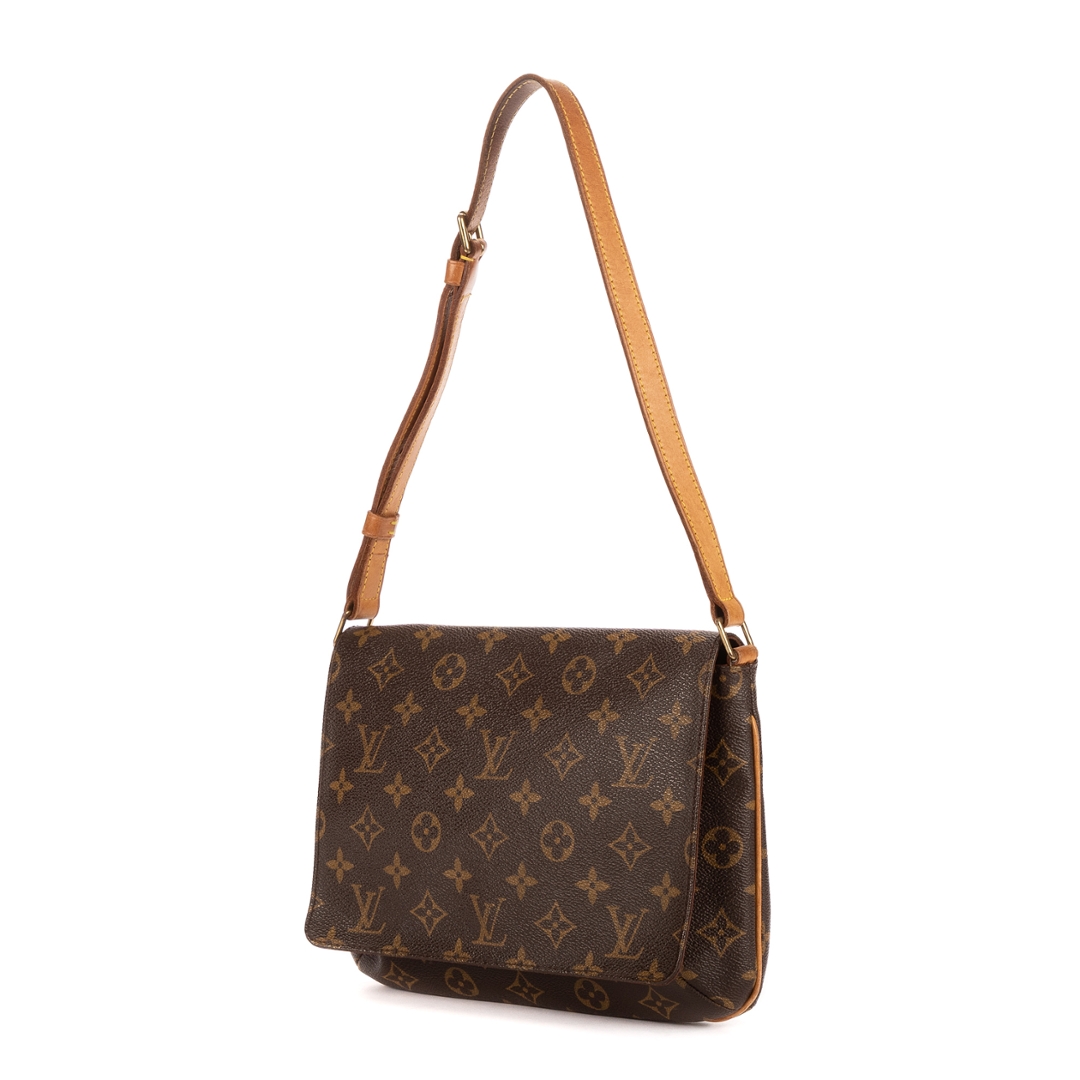 A vintage Louis Vuitton monogram coated canvas Musette Tango bag with a certificate of authenticity, Approximately 19cm height, 25cm width.