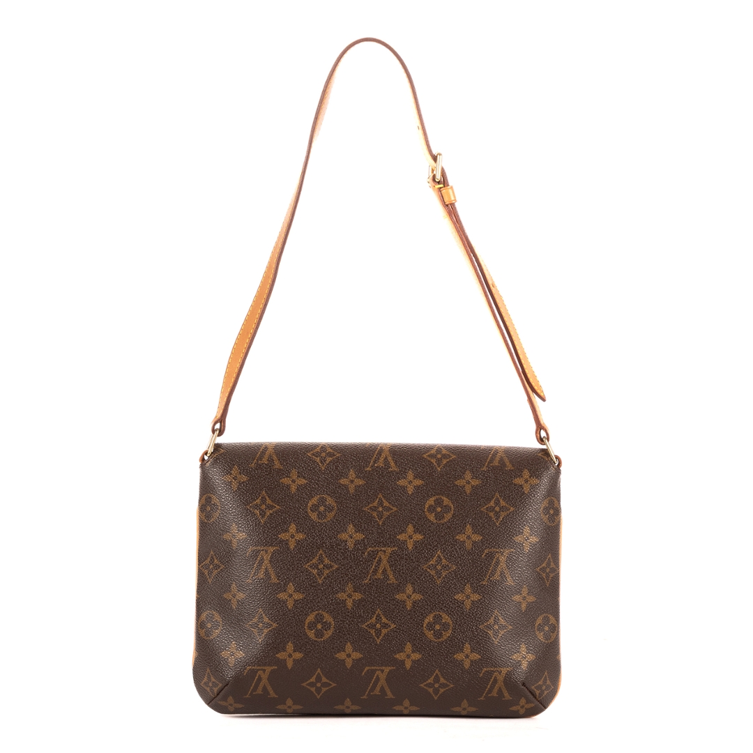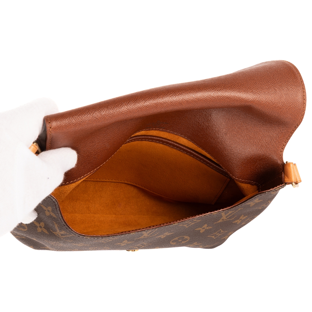 A vintage Louis Vuitton Musette Tango bag crafted in the iconic brown Monogram coated canvas, complemented by natural leather trim and gold-tone hardware. The clean, structured silhouette reflects the timeless appeal of this classic shoulder bag, with an adjustable strap that allows for a comfortable and adaptable fit.