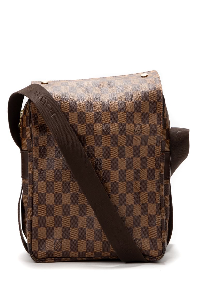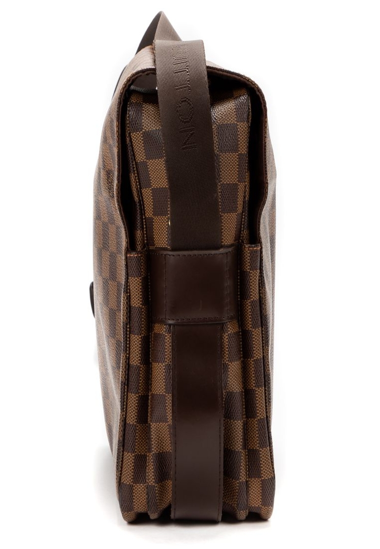A vintage Louis Vuitton Naviglio bag crafted in the classic brown Damier Ebene coated canvas, complemented by dark leather trim and understated hardware. The structured, flap-front design delivers a refined yet practical aesthetic, with the signature checkerboard pattern offering a timeless alternative to the Monogram line.