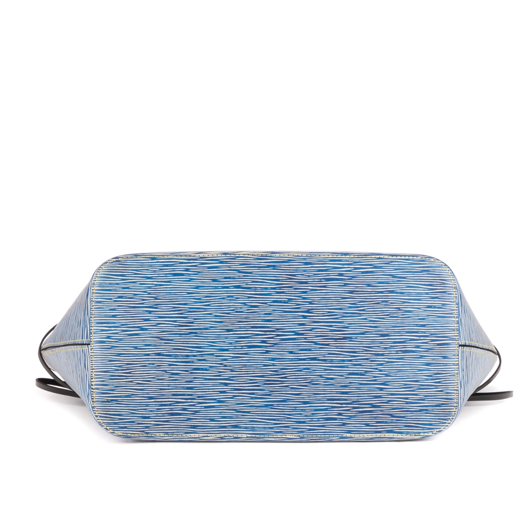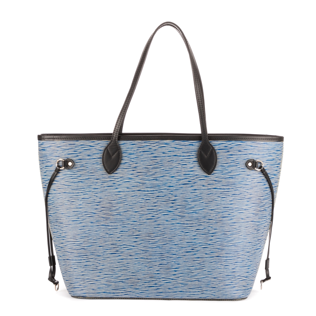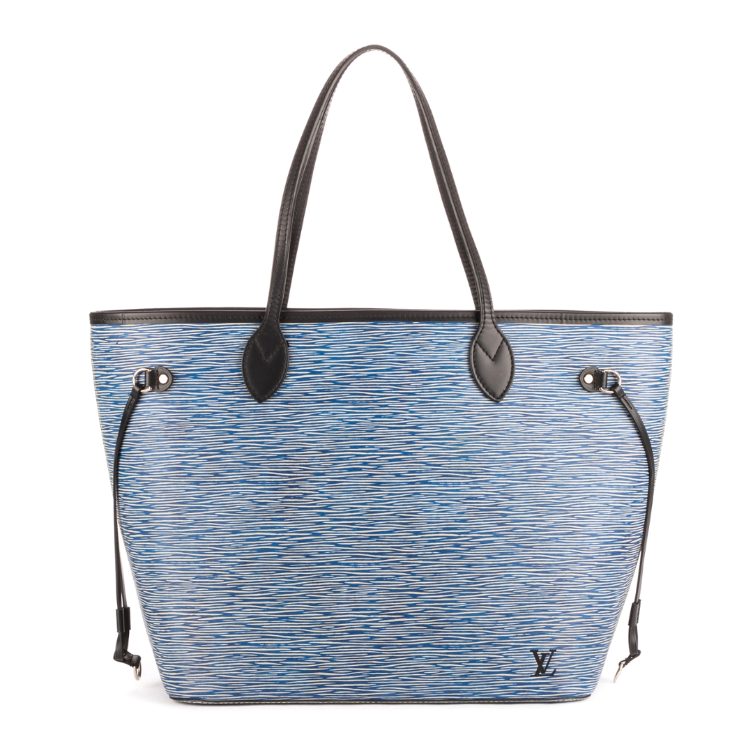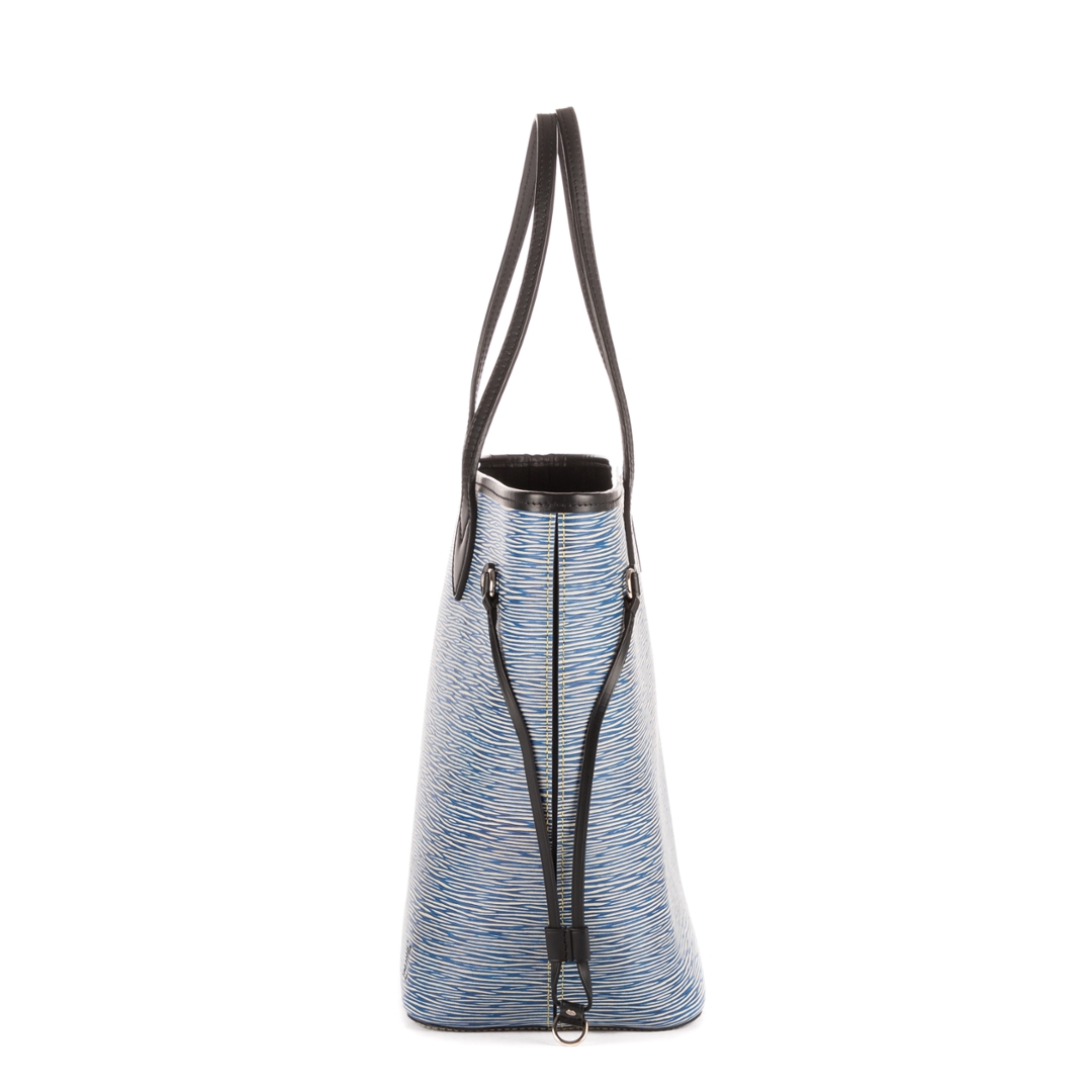 A vintage Louis Vuitton blue calf leather Neverfull bag with a certificate of authenticity. Approximately 29cm height, 33cm width.