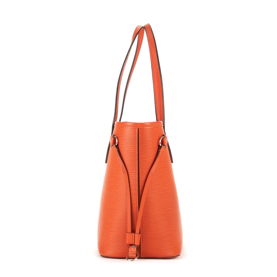 A vintage Louis Vuitton orange calf leather Neverfull bag with a certificate of authenticity. Approximately 22cm height, 29cm width.