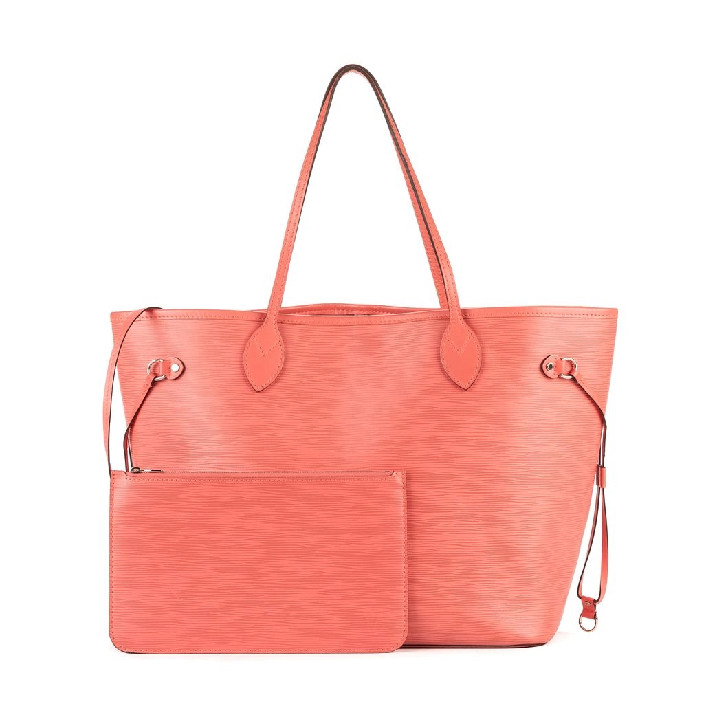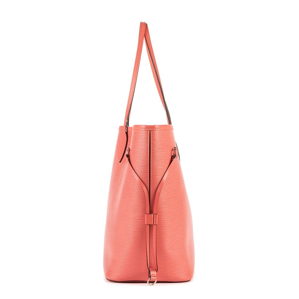 A vintage Louis Vuitton pink calf leather Neverfull bag is a uniquely stunning and functional accessory. This authentic piece, accompanied by a certificate of authenticity, is a rare find in the brand’s distinctive Epi leather, celebrated for its durability and beautiful ribbed texture. The striking pink hue gives this iconic silhouette a fresh and luxurious feel, making it a bold statement piece.