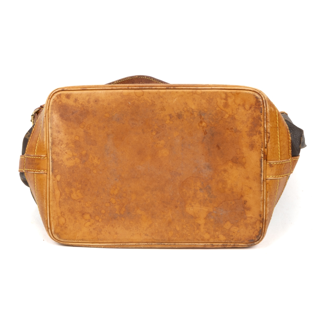 A vintage Louis Vuitton Noé bag crafted in the house’s iconic monogram coated canvas, showcasing a timeless silhouette originally designed for both function and style. The instantly recognisable pattern is complemented by natural leather trim, a structured base, and a classic drawstring closure, creating a relaxed yet refined bucket profile.