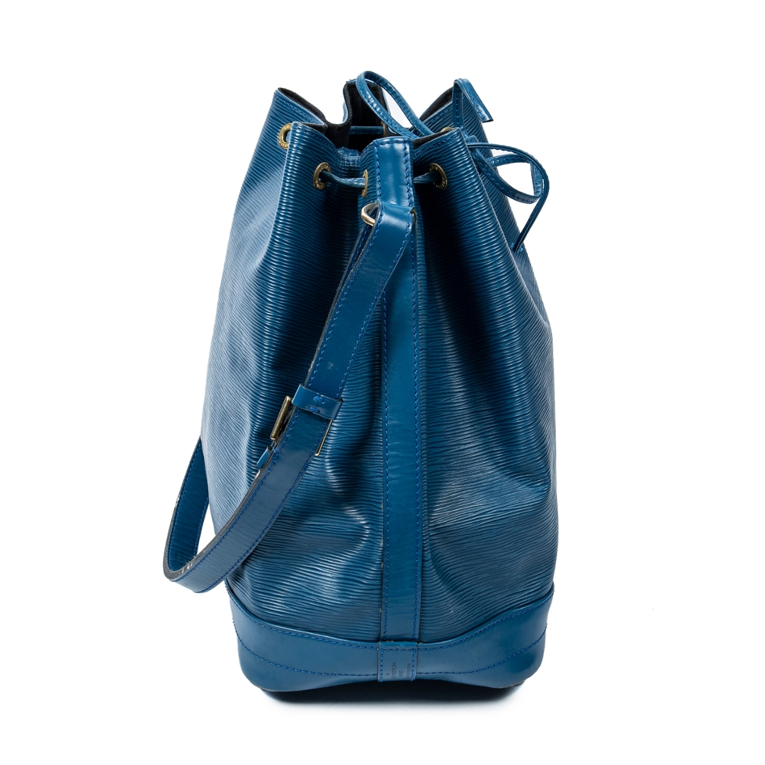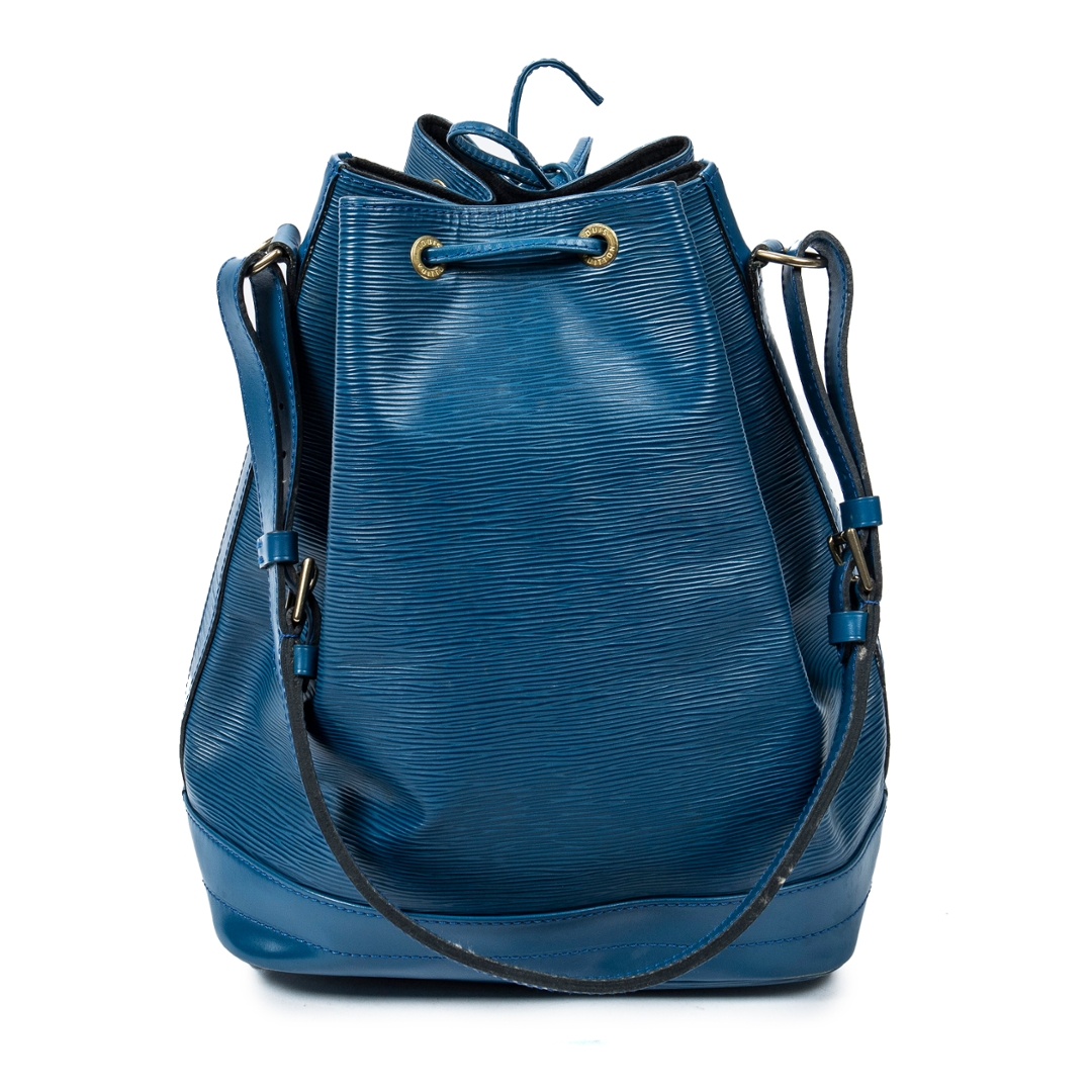 A vintage Louis Vuitton blue calf leather Noe bag with a certificate of authenticity. Approximately 34cm height, 27cm width.