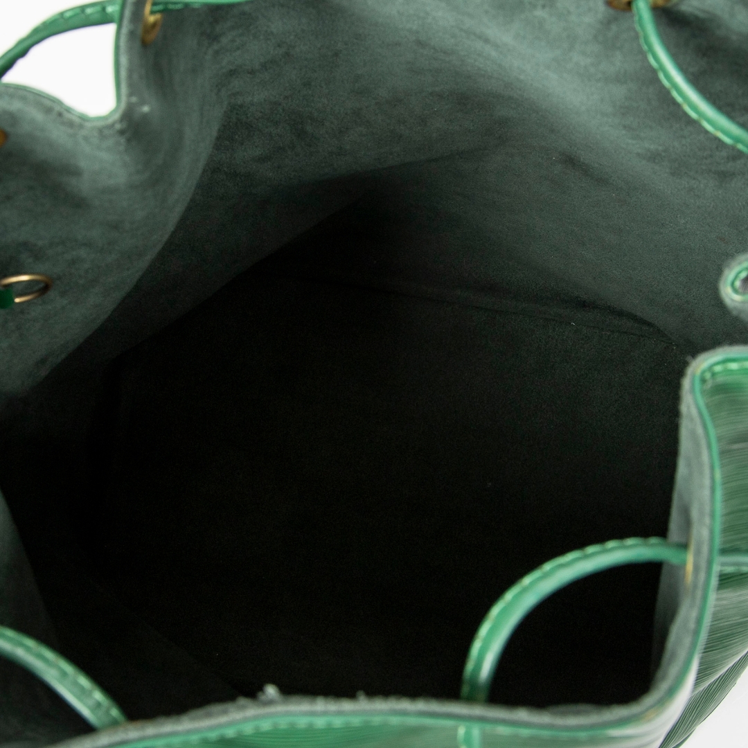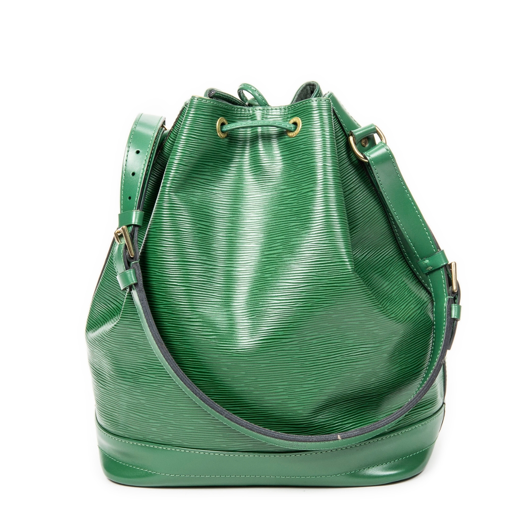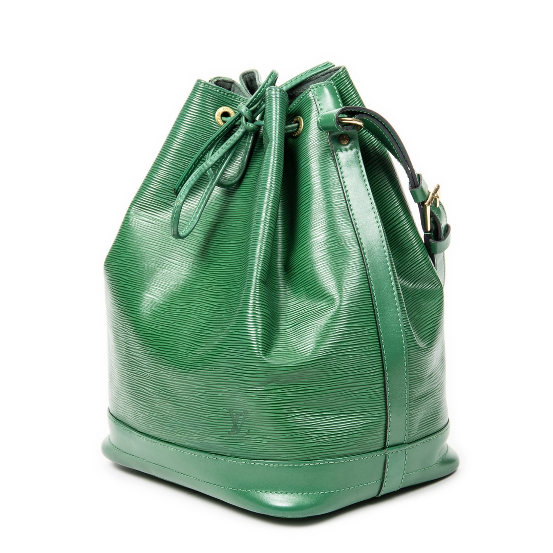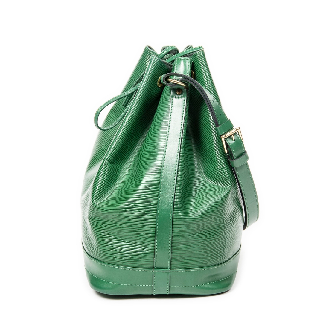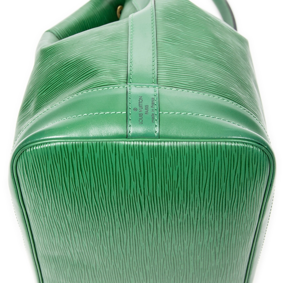 A vintage Louis Vuitton green calf leather Noe bag with a certificate of authenticity. Approximately 34cm height, 27cm width.