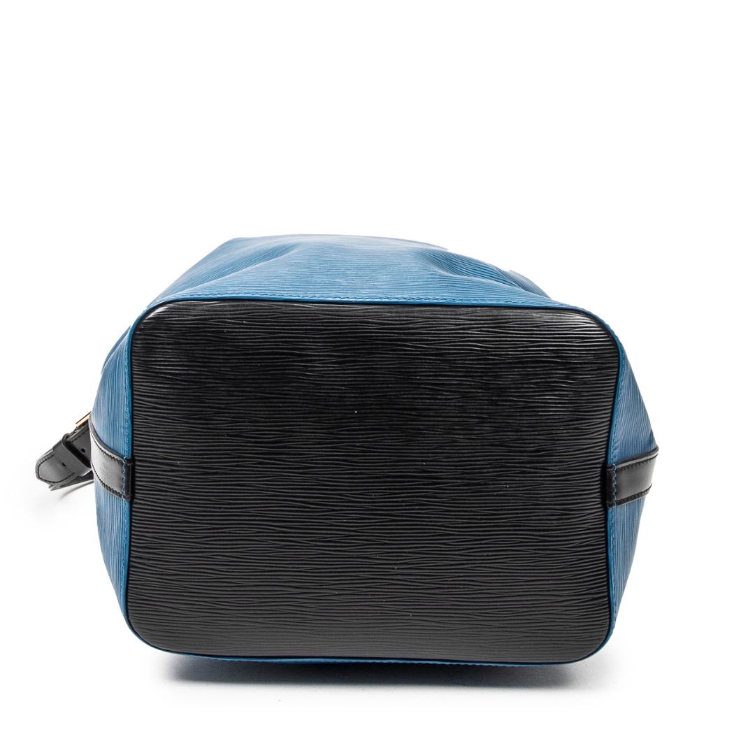 A vintage blue and black calf leather Louis Vuitton Noe Bicolor bag with a certificate of authenticity, Approximately 26cm height, 24cm width.