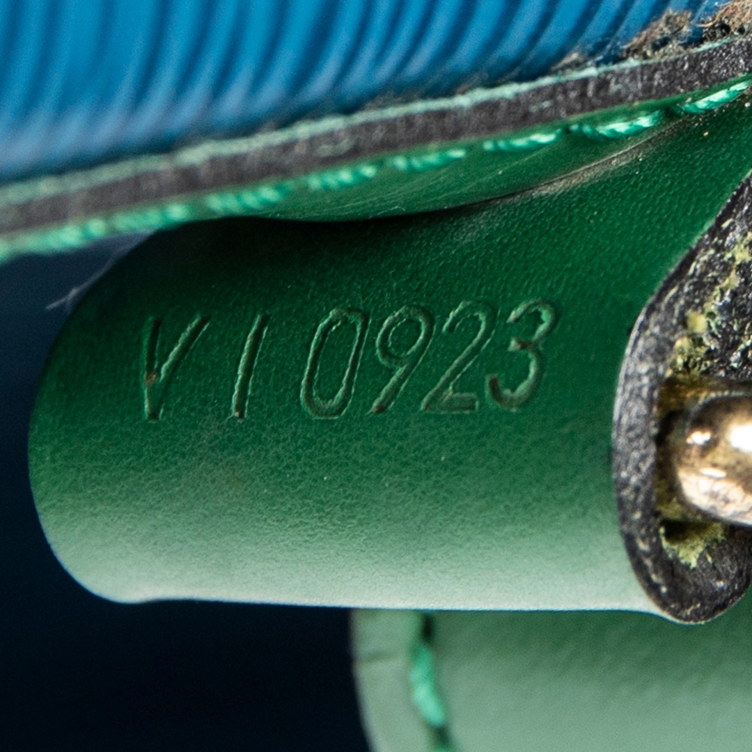 A vintage Louis Vuitton blue red & green calf leather Noe Tricolorbag with a certificate of authenticity. Approximately 34cm height, 27cm width.