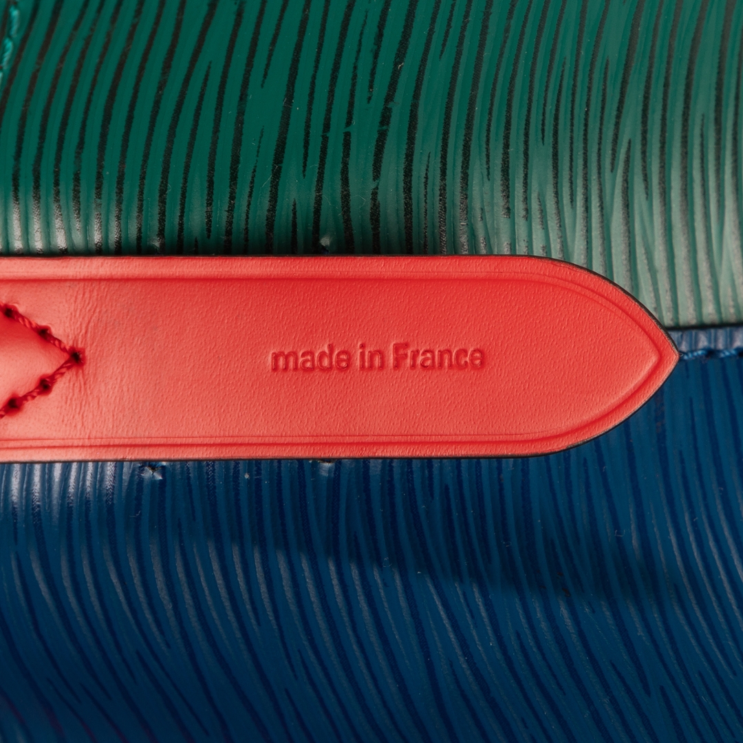 A vintage Louis Vuitton blue calf leather Noe Tricolor bag with a certificate of authenticity, Approximately 26cm height, 25cm width.