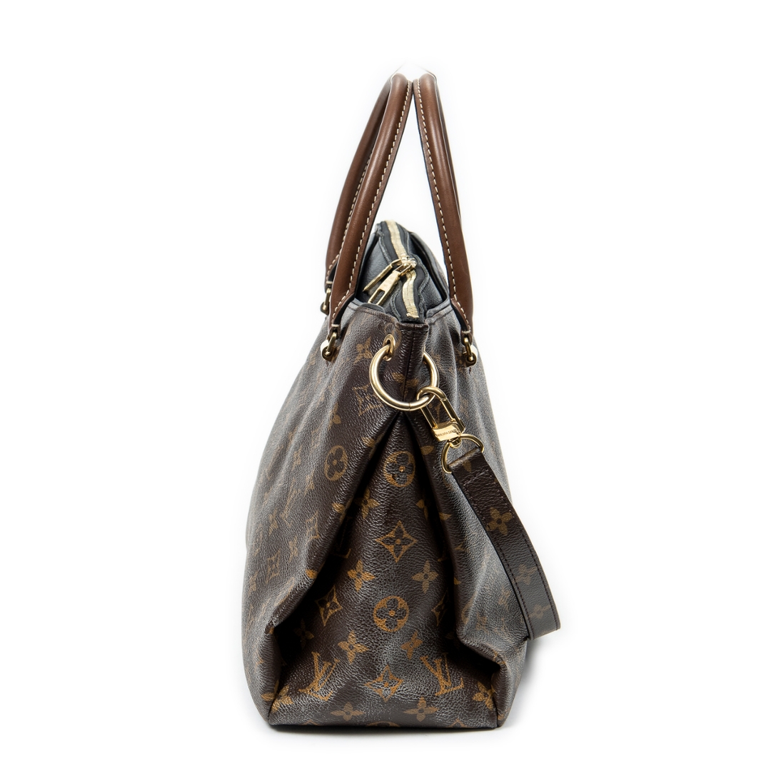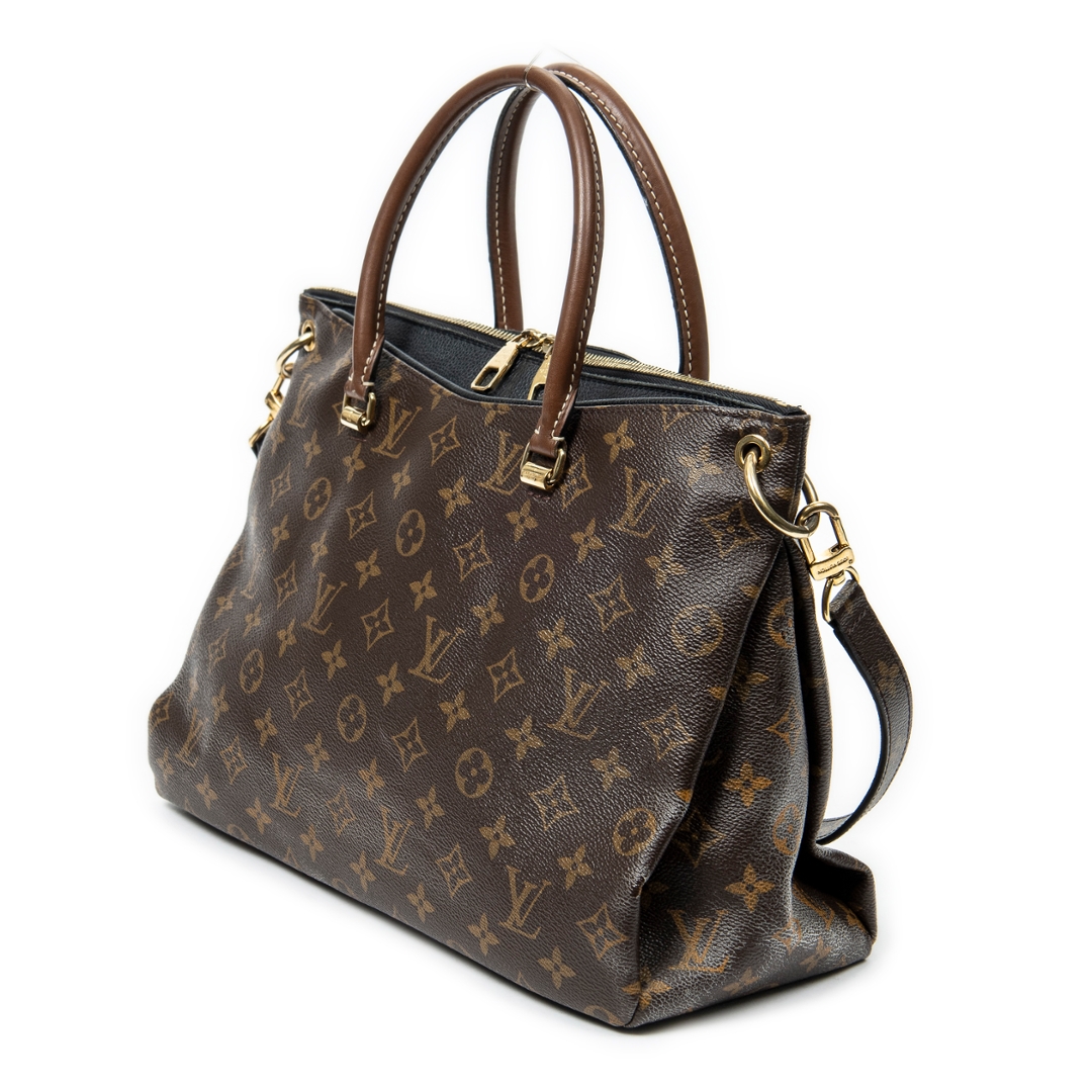 A vintage Louis Vuitton monogram coated canvas Pallas bag with a certificate of authenticity. Approximately 23cm height, 33cm width.