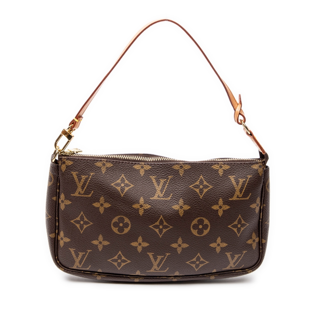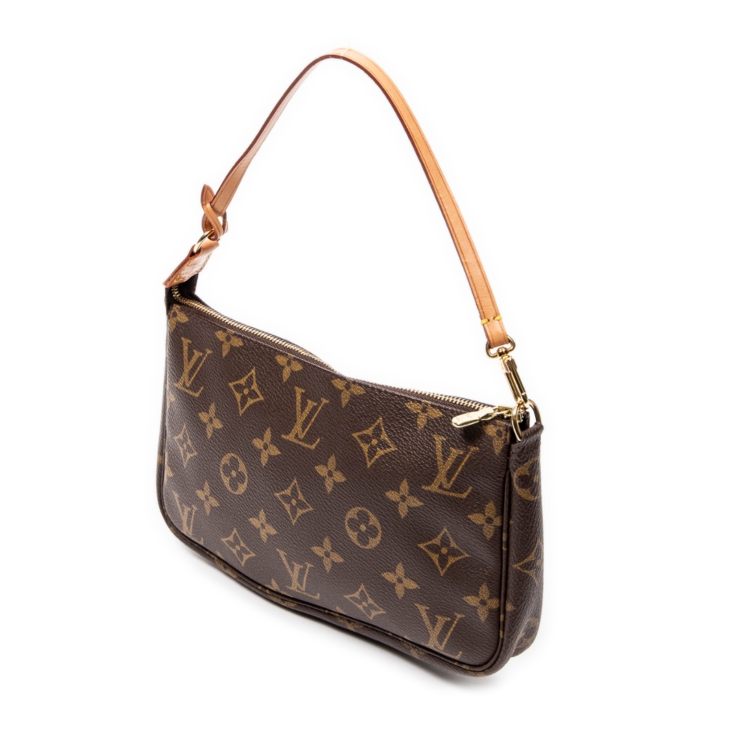 A vintage Louis Vuitton monogram coated canvas Pochette Accessoires bag with a certificate of authenticity, Approximately 13cm height, 21cm width.
