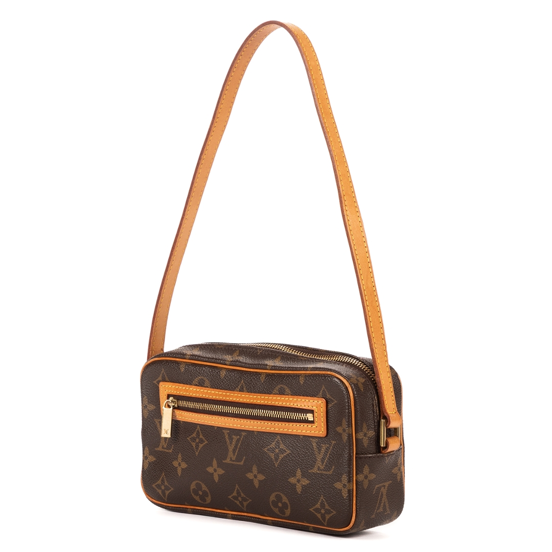 A vintage Louis Vuitton monogram coated canvas Pochette Cité bag with a certificate of authenticity. Approximately 12cm height, 21cm width.