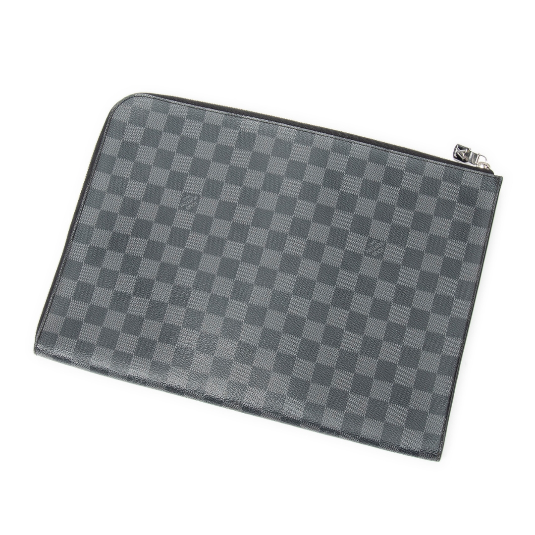 A vintage Louis Vuitton black damier coated canvas Pochette Jour bag with a certificate of authenticity. Approximately 25cm height, 35cm width.