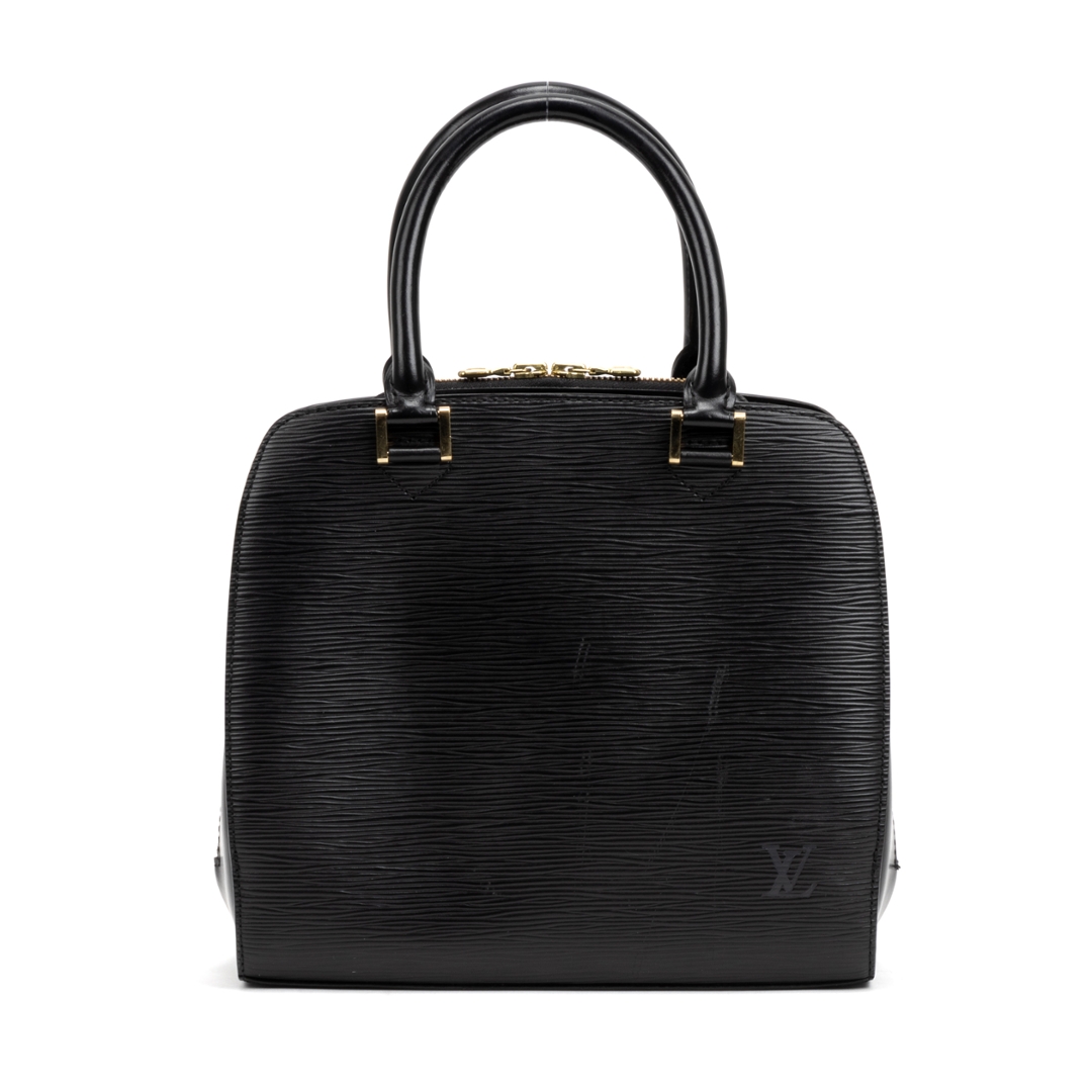 A vintage Louis Vuitton black calf leather Pont-Neuf bag with a certificate of authenticity, Approximately 22cm height, 24cm width.