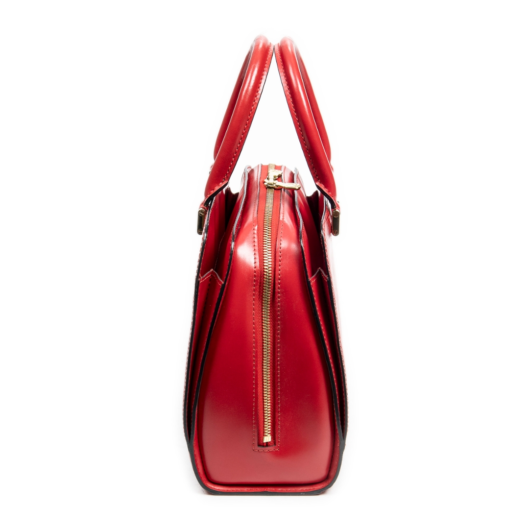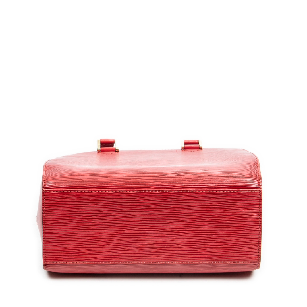 A vintage Louis Vuitton red calf leather Pont-Neuf bag with a certificate of authenticity. Approximately 22cm height, 24cm width.